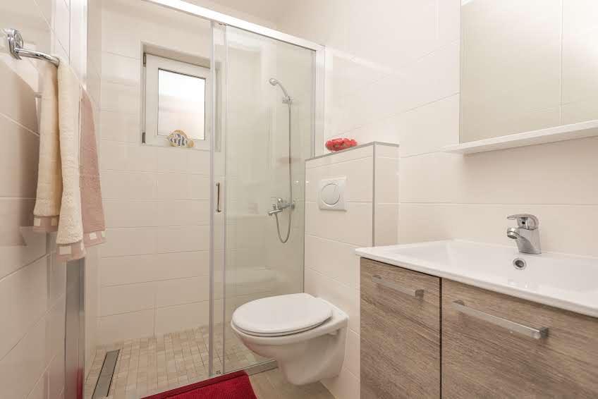 La maison, c'est-à-dire les appartements, sont situés dans la partie orientale de Tucep et à 1 minute à pied de la plage. Chacun des 3 studios de 4 lits est entièrement équipé pour un long ou court séjour (climatisation, cuisine, réfrigérateur, TV...). Chacun de ces appartements dispose d'une chambre avec balcon, d'un petit couloir, d'une cuisine et d'un lit supplémentaire pour deux personnes (2 plus 2). Ils disposent chacun de deux balcons avec vue sur la mer. De plus, nous disposons d'un autre grand appartement de plus de 100 mètres carrés, certainement équipé pour plusieurs personnes, 3 chambres, 3 salles de bain, un grand séjour avec possibilité de dormir, une grande cuisine, un hall d'entrée et bien d'autres choses supplémentaires. (TV, lave-linge, lave-linge..etc