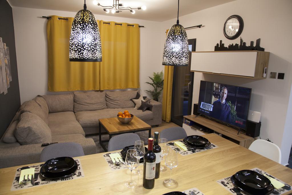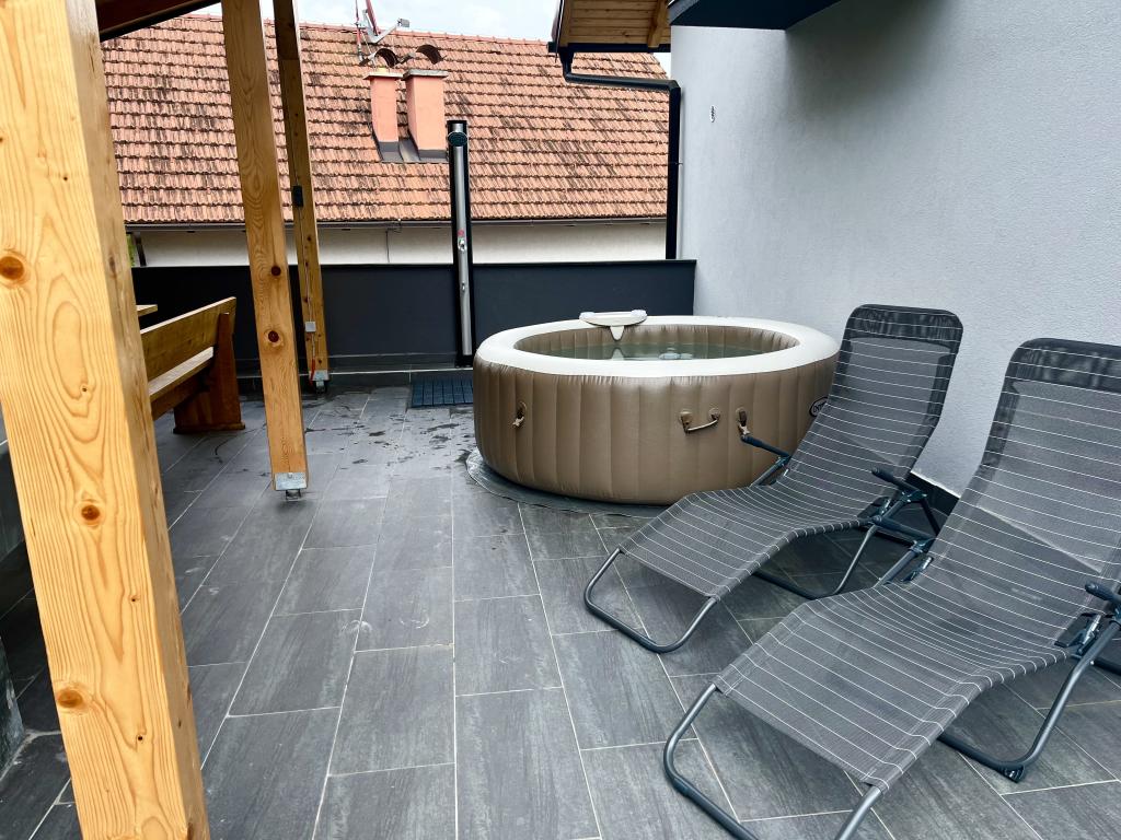 Entourez-vous avec style dans cet espace extraordinaire. Cette villa 4 étoiles moderne est située sur une colline tranquille au-dessus du spa Tuhelj et offre une vue magnifique sur les environs. L'appartement au rez-de-chaussée (38m2) a tout ce dont vous avez besoin pour des vacances parfaites et plus encore. Cuisine entièrement équipée avec four, lave-vaisselle et micro-ondes avec tous les accessoires. TV avec plus de 100 programmes et Netflix. La terrasse extérieure avec une pergola en bois, un barbecue et une belle vue vous détendra à chaque fois... L'appartement à l'étage est de deux étages (70m2) et dispose de 3 chambres, un grand séjour avec une cuisine entièrement équipée, un sauna, une salle de bain et un WC. TV avec plus de 100 programmes, Netflix, console PS4, radio BT, etc... La terrasse couverte offre une belle vue sur les environs. Accès pour les clients Nos clients ont accès au parking privé et au garage, à la buanderie, à la terrasse extérieure avec barbecue et évier, au bain à remous (mai-octobre), à la douche de jardin, au sauna et bien plus encore...