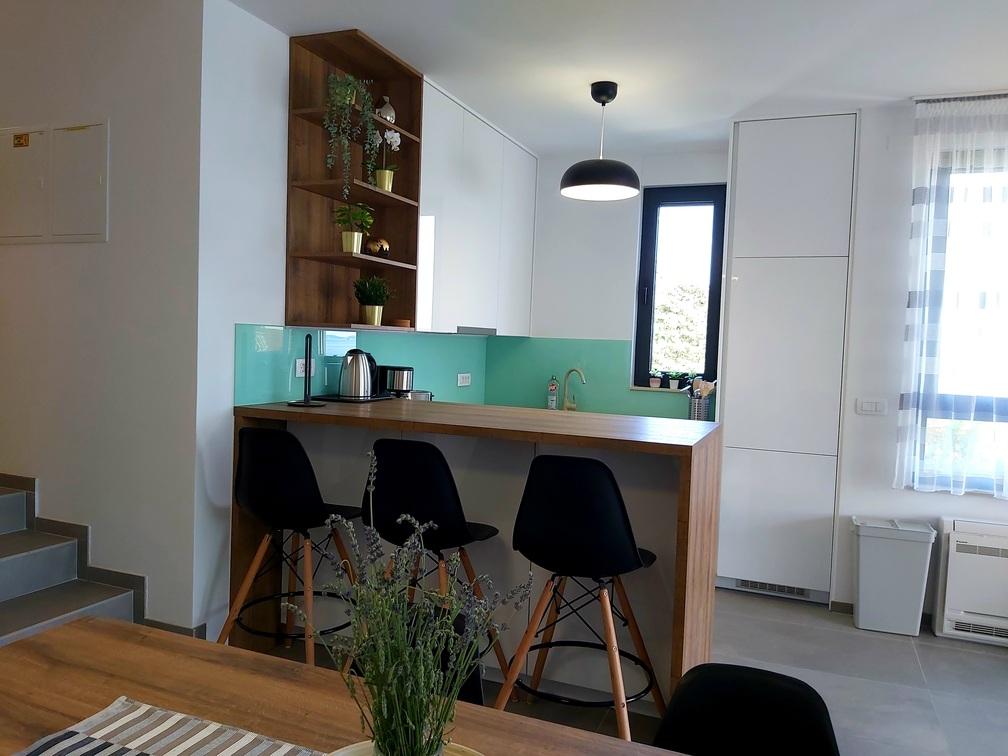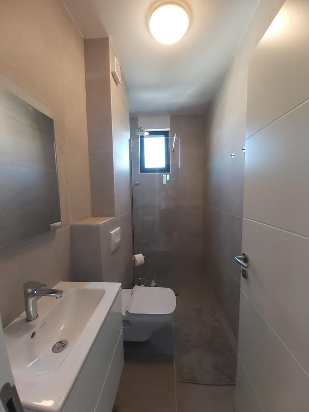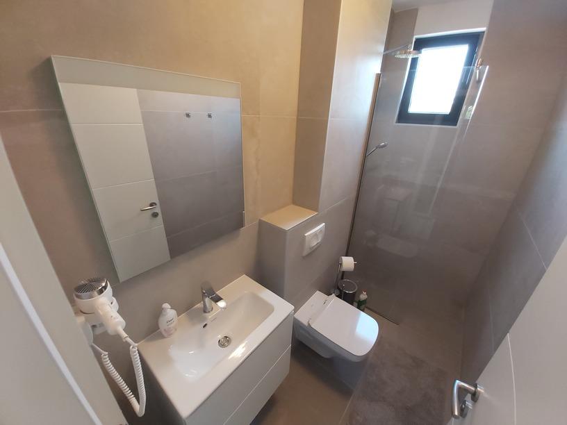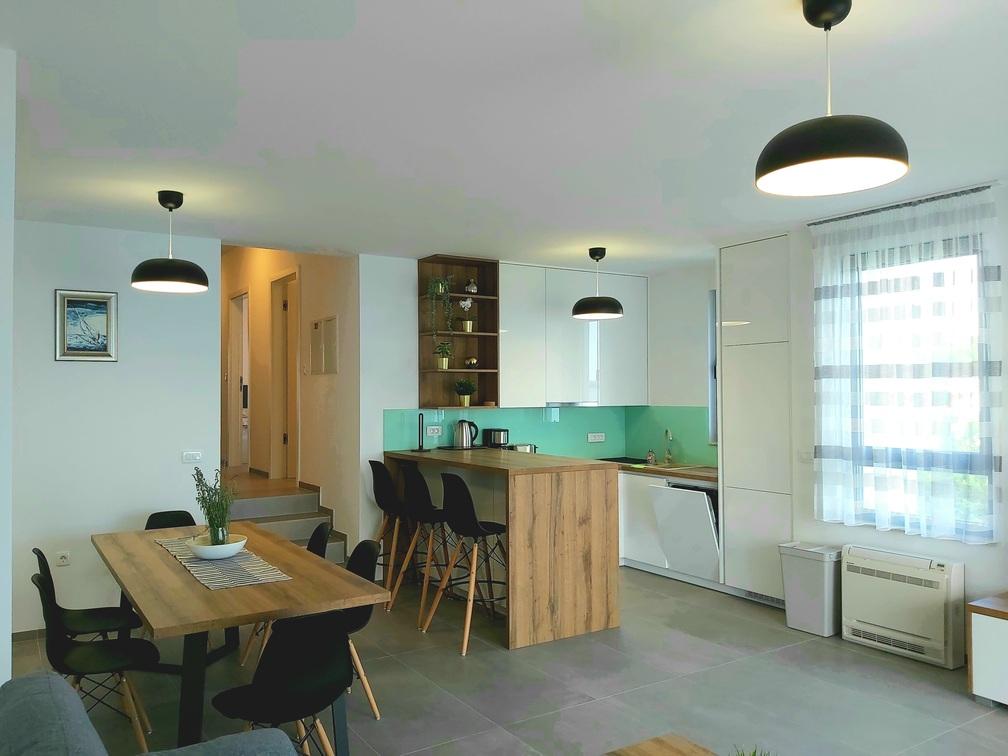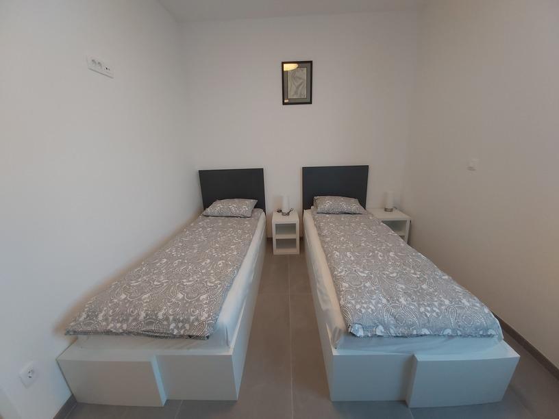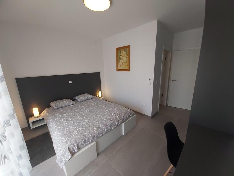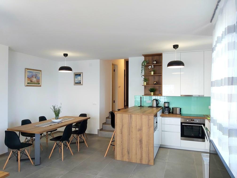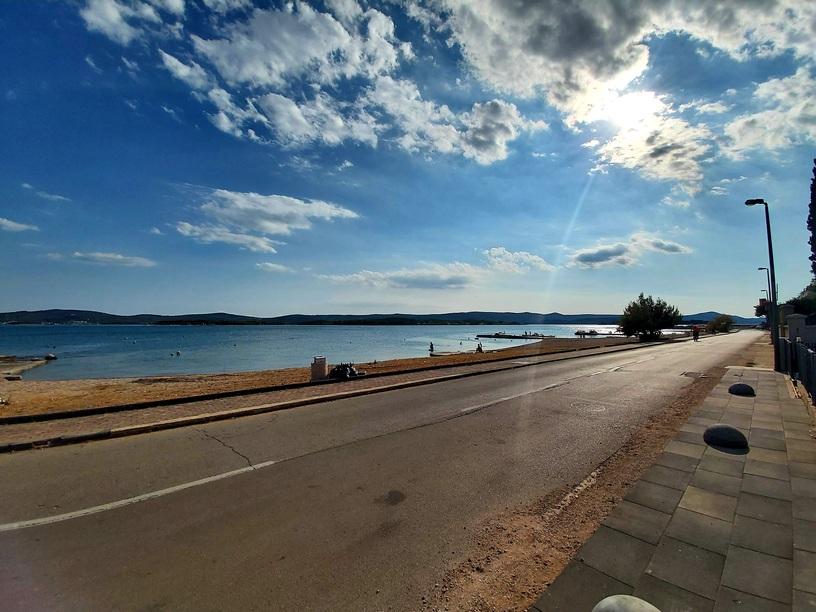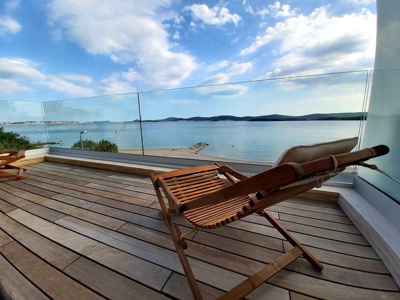 Cet appartement moderne et ensoleillé offre une atmosphère résidentielle paisible, avec un accès rapide et facile à Turanj, Biograd na Moru et Zadar. Admirez l'aménagement paysager contemporain de l'espace de vie ouvert et profitez du cadre paisible depuis la charmante terrasse. L'appartement est situé au deuxième étage, avec une superficie totale de 81,30 m2. Il se compose d'une cuisine moderne entièrement équipée avec appareils électroménagers, salle à manger, salon, couloir, deux salles de bains avec douche et trois chambres avec lits doubles, placards et coffre-fort. La terrasse de 17,20 m2 offre une vue sur le canal de Zadar et la plage située directement en dessous de l'appartement. La chambre nord a un balcon de 5,40 m2. A côté de l'appartement il y a un parking entièrement clôturé et couvert d'une pergola.