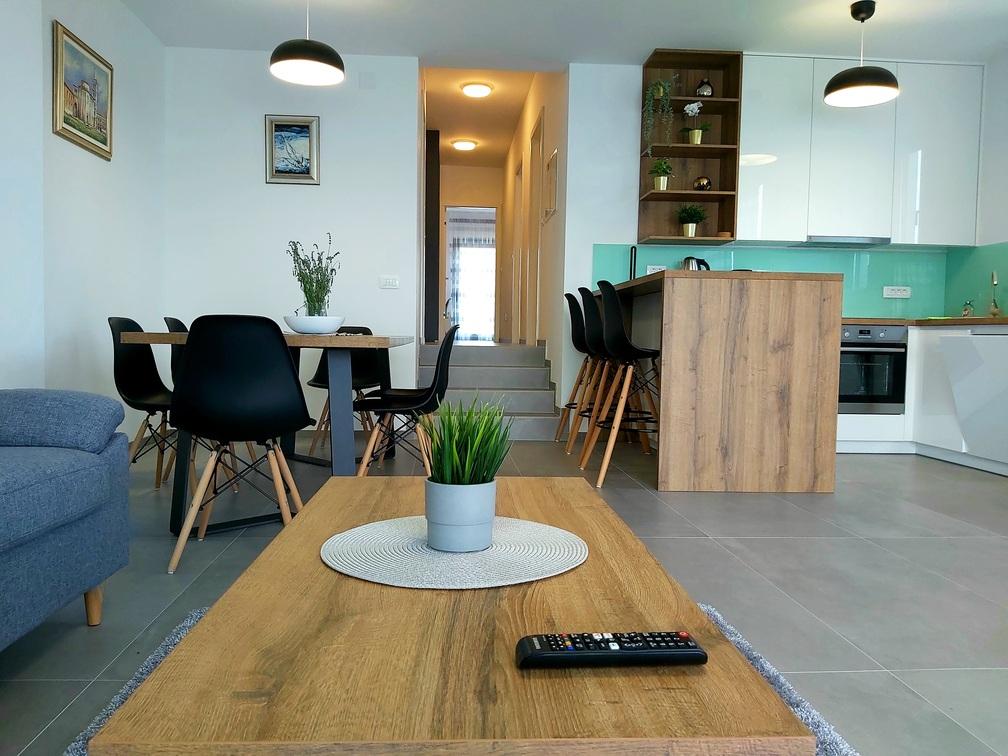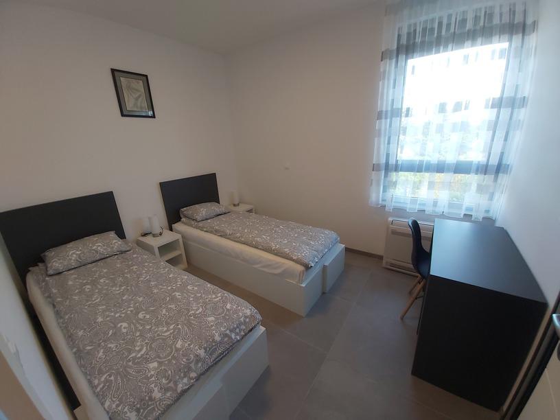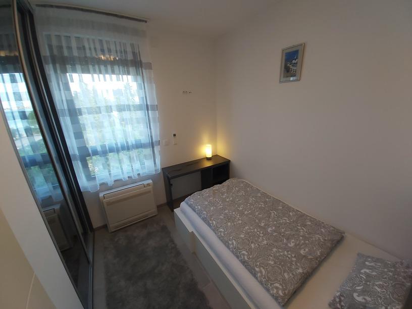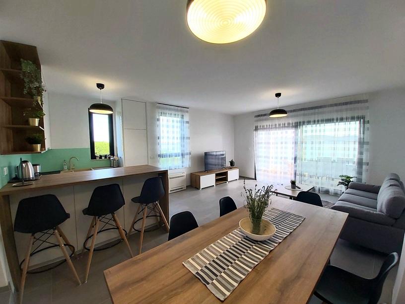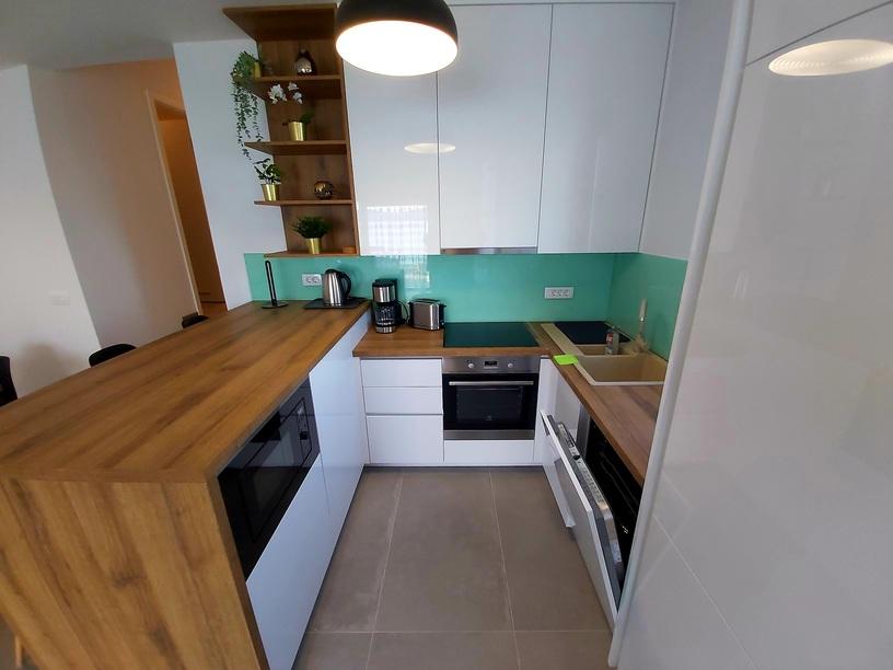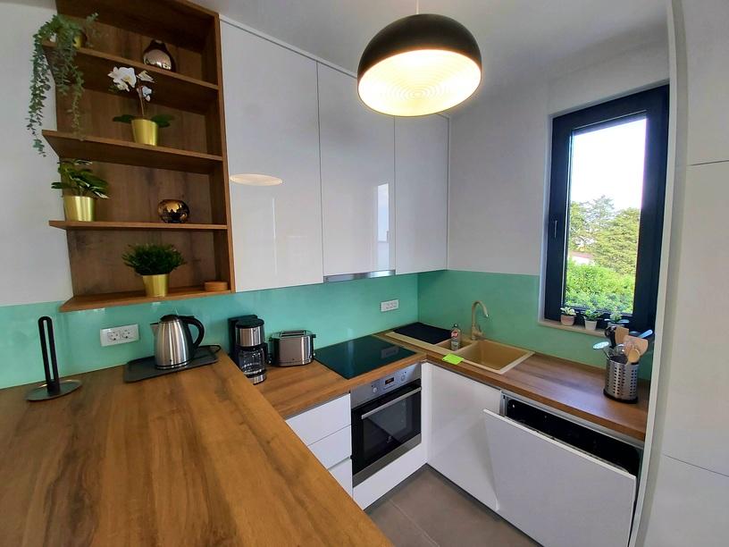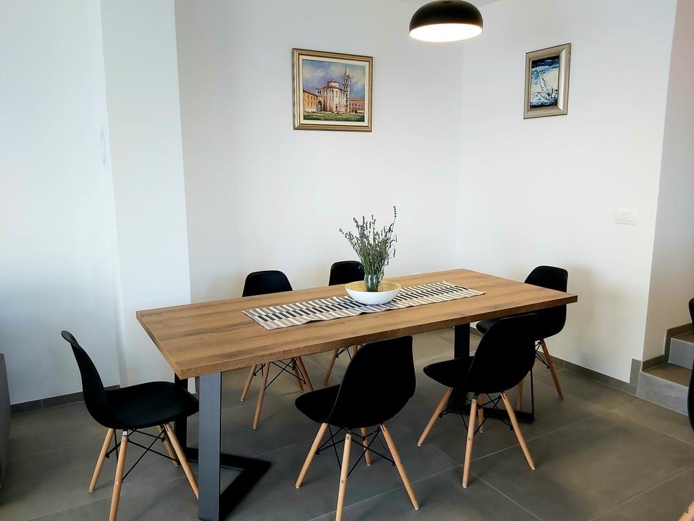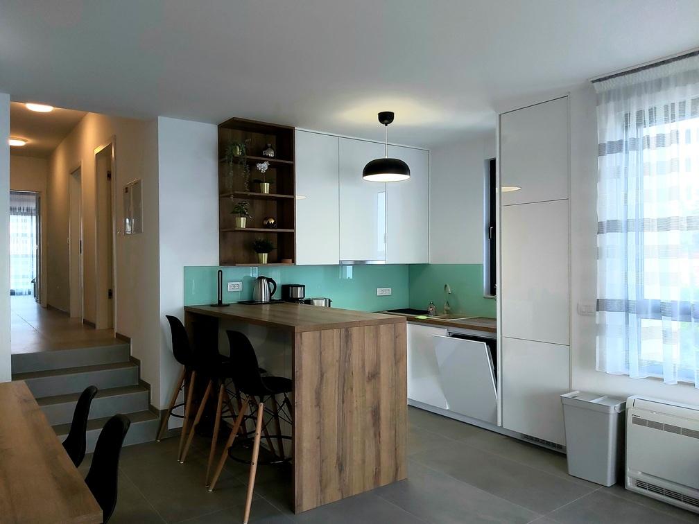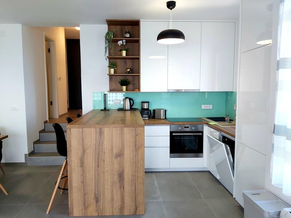 Cet appartement moderne et ensoleillé offre une atmosphère résidentielle paisible, avec un accès rapide et facile à Turanj, Biograd na Moru et Zadar. Admirez l'aménagement paysager contemporain de l'espace de vie ouvert et profitez du cadre paisible depuis la charmante terrasse. L'appartement est situé au deuxième étage, avec une superficie totale de 81,30 m2. Il se compose d'une cuisine moderne entièrement équipée avec appareils électroménagers, salle à manger, salon, couloir, deux salles de bains avec douche et trois chambres avec lits doubles, placards et coffre-fort. La terrasse de 17,20 m2 offre une vue sur le canal de Zadar et la plage située directement en dessous de l'appartement. La chambre nord a un balcon de 5,40 m2. A côté de l'appartement il y a un parking entièrement clôturé et couvert d'une pergola.