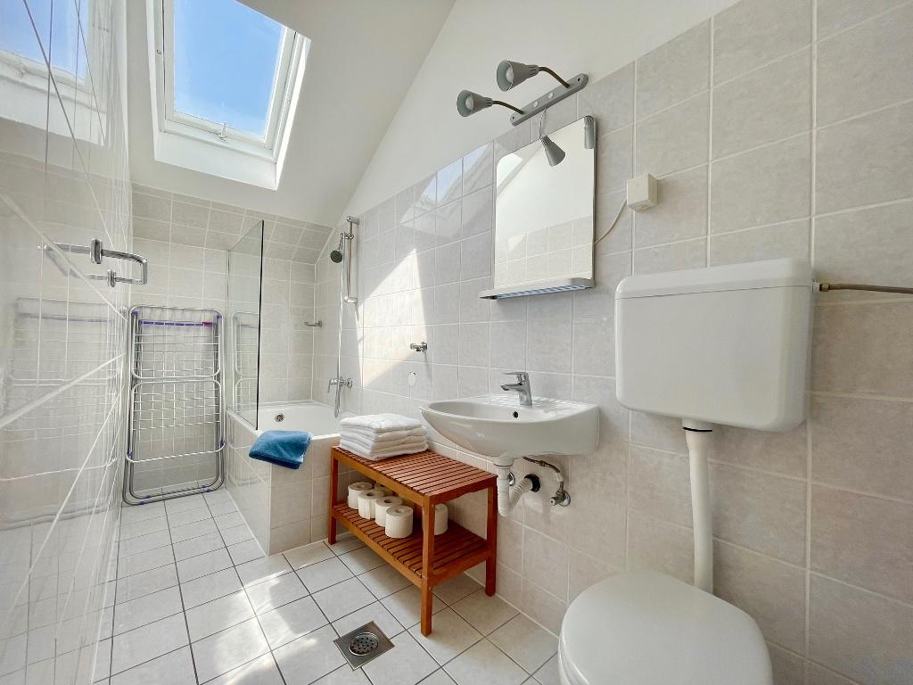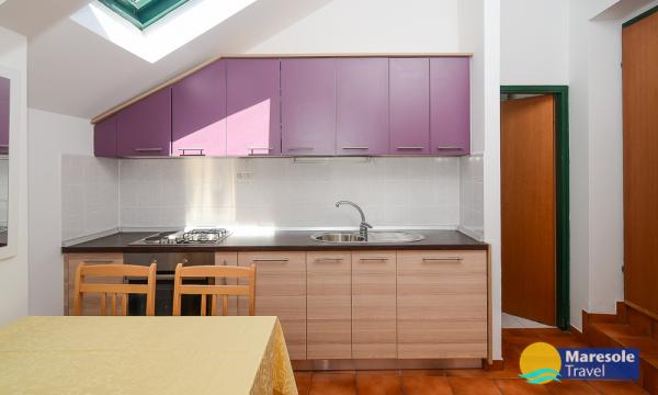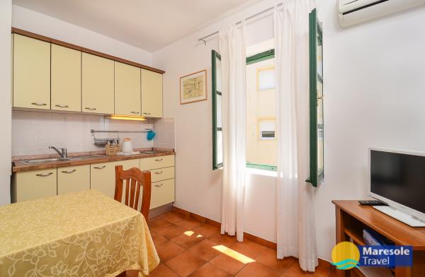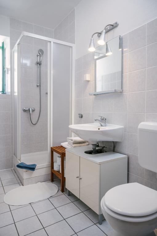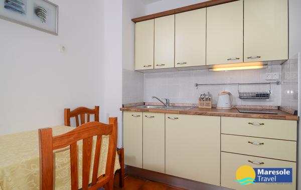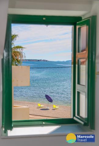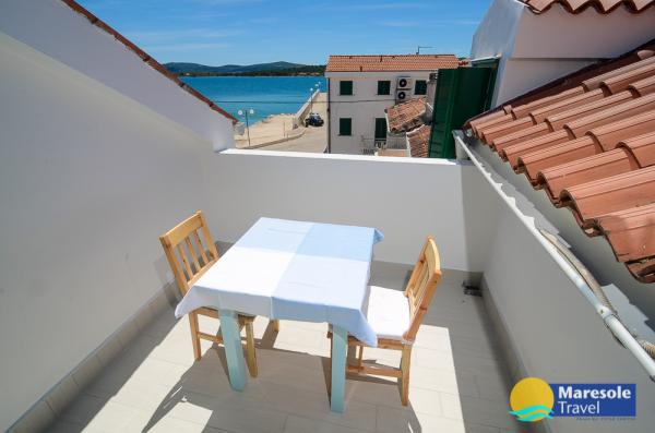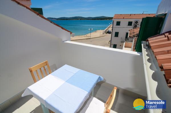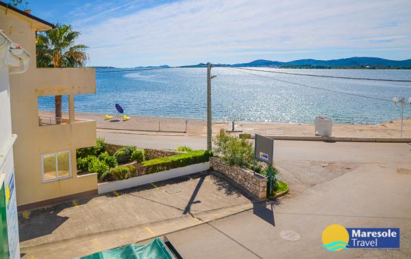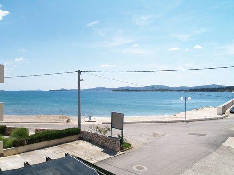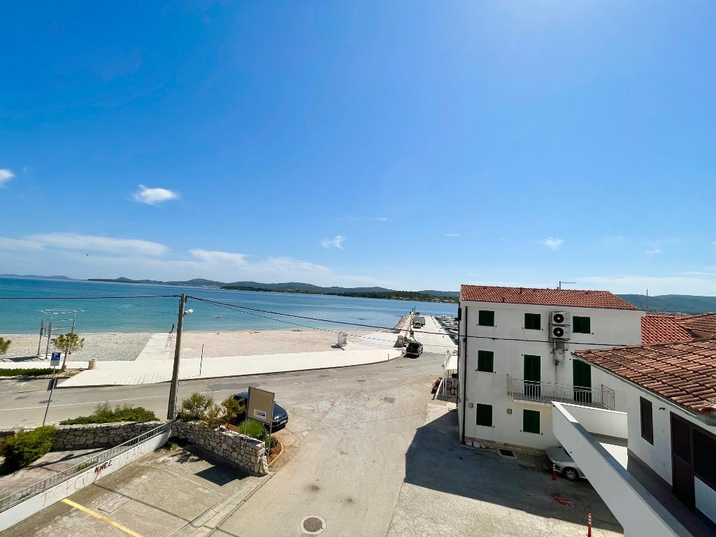 Les appartements modernes sont situés au premier étage et au deuxième étage (dernier étage) dans une maison dans le centre, sur la première ligne de la plage, avec vue sur la mer. Les appartements comprennent une salle de séjour avec cuisine et salle à manger dans l'un, un appartement avec un balcon avec vue sur la mer, une chambre double, salle de bains avec douche / WC. Parking dans l'espace public devant la maison. - Supplément pour les animaux E5, 00 par jour.