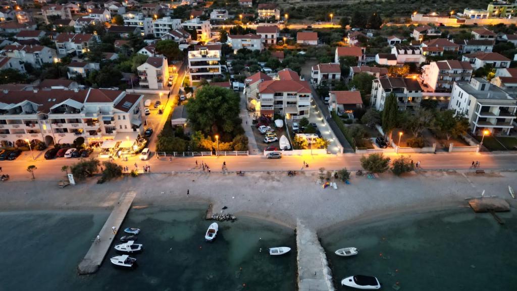 J'étais dans un appartement au 2ème étage avec vue sur la mer. Très agréable, propre, calme, sympathique propriétaires Dinko et Marina. Mer proche, balades possibles à Filip Jakov, environ 10 minutes à pied. Je recommande.
