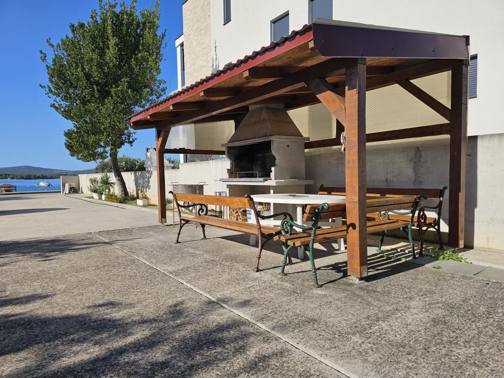 Les appartements Hodak sont situés sur la promenade entre Sveti Filip i Jakov et Turanj, en bord de mer. Dans la cour, vous trouverez un grand parking gratuit, un barbecue et une douche extérieure à disposition des clients. Chaque appartement, accessible par une entrée indépendante située à l'extérieur de l'escalier, comprend deux chambres avec lits doubles, une salle de bains, une cuisine et un salon. Tous les appartements sont climatisés et équipés d'une télévision et d'une connexion Wi-Fi gratuite. Le premier appartement se trouve au premier étage et dispose d'une grande terrasse, tandis que le second, au deuxième étage, possède une terrasse couverte offrant une vue imprenable sur la mer et les îles environnantes. La plage aménagée, calme et idéale pour les enfants, est située juste en face de la cour. Deux bouées d'amarrage pour bateaux à moteur sont mises à la disposition des clients. Les appartements sont disponibles à la location du 1er juin au 30 septembre.