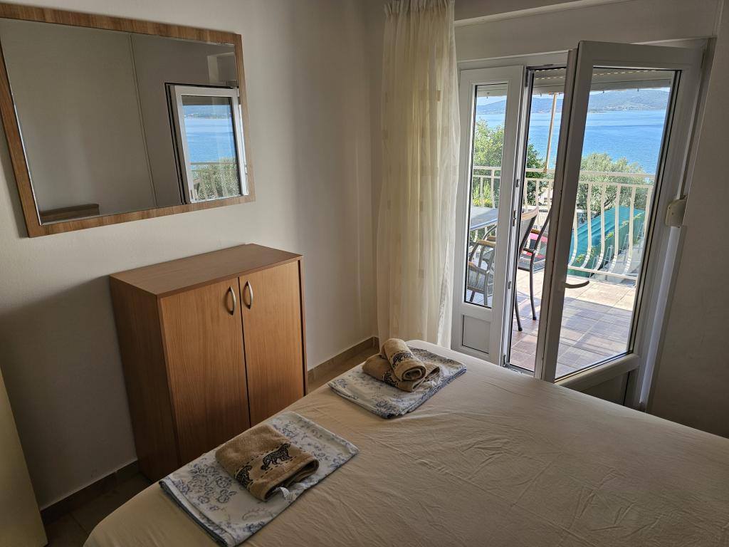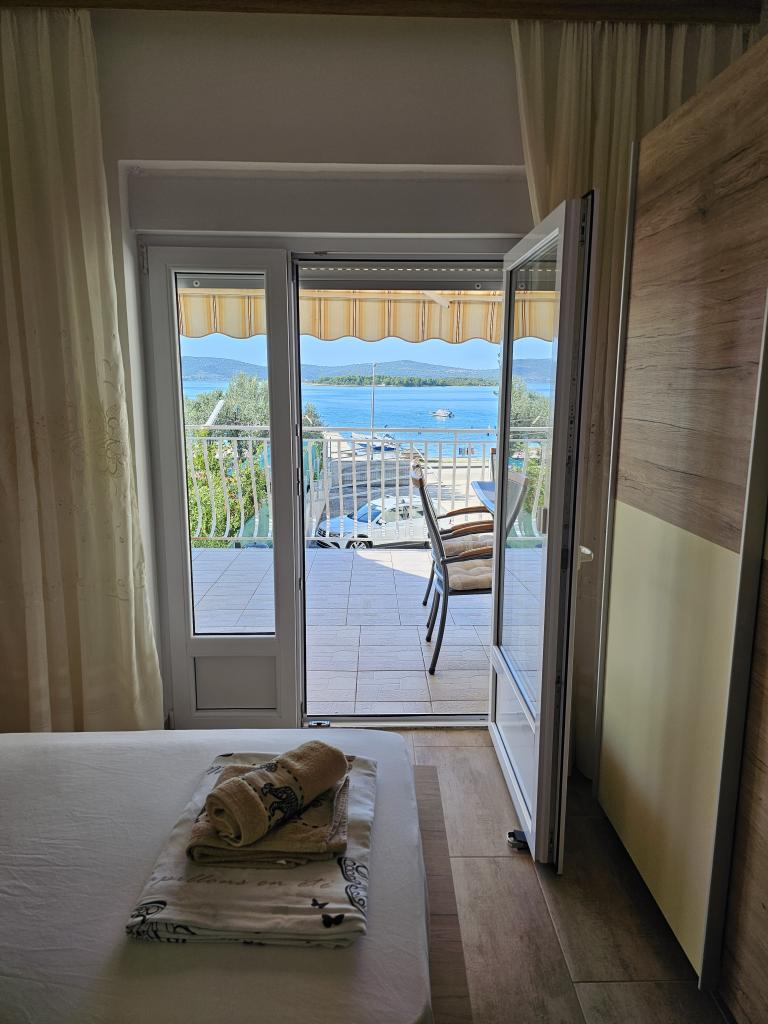 Vue imprenable sur la mer depuis la terrasse. Hôte agréable. Parking dans la cour avec auvent pour tous les clients. La cour est suffisamment grande pour que les enfants puissent jouer et discuter. Un barbecue en briques couvert avec table et bancs est à votre disposition. Ceux qui aiment se doucher après une baignade en mer pourront profiter d'une douche chaude dans la cour. L'appartement est soigné et équipé de tout le nécessaire. Nous revenons l'année prochaine.