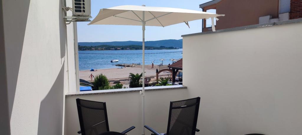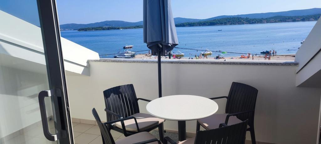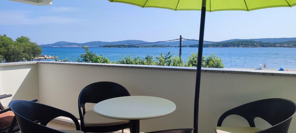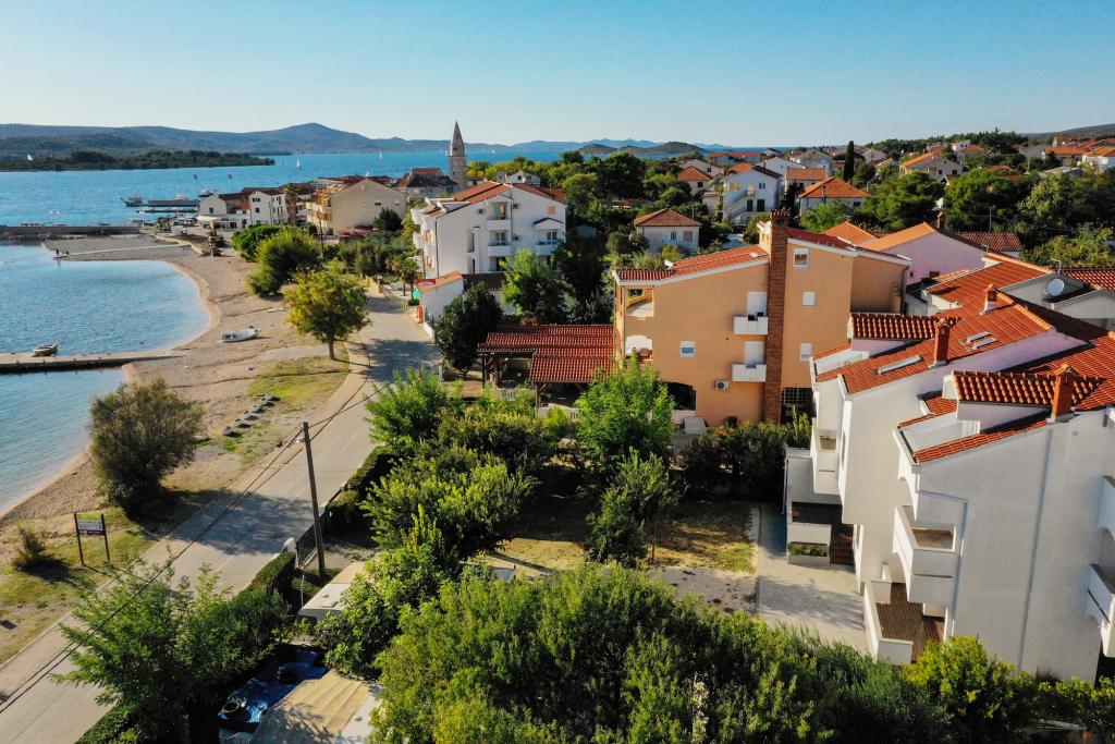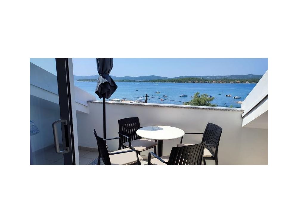 Les appartements Maestral sont situés à Turanj, au premier rang de la mer. En face de la maison est la plage et dans la maison, nous avons 9 appartements à louer. Les appartements sont répartis sur 3 étages et peuvent accueillir 3 ou 4 personnes. Tous ont des balcons et vue sur la mer. Dans la cour il y a un parking gratuit pour nos clients. Elles sont équipées d'une télévision, de la climatisation et d'une connexion wi-fi à Internet. Turanj est un endroit idéal pour des vacances tranquilles en famille. Les environs de Biograd, Zadar et les parcs nationaux de Kornati, Krka, North Velebit et Plitvice confèrent à cet endroit une valeur supplémentaire. Il est très facile de partir en excursion d'une journée et de connaître les monuments romains de Zadar, le Forum, la cathédrale de Sv. Stošije ou visiter certains des parcs nationaux. Il est particulièrement important de mentionner les îles Babac et Komornik en face du Tour, qui constituent un site de plongée idéal.