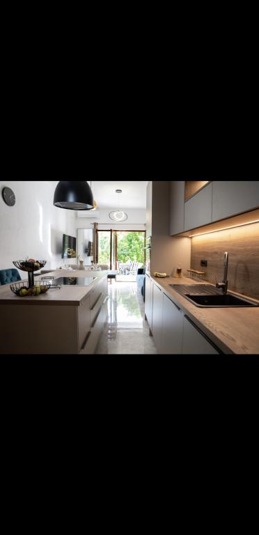 Un bel appartement bien équipé, niché dans la verdure, à proximité de la mer. Une douche extérieure est très pratique après la baignade. La plage de galets est sécurisée pour les enfants. À proximité se trouvent une boulangerie, une boutique, des cafés et des restaurants. C'est un point de départ idéal pour des excursions dans les environs. L'hôtesse est très sympathique, serviable et toujours souriante. Nous reviendrons sans hésiter.
