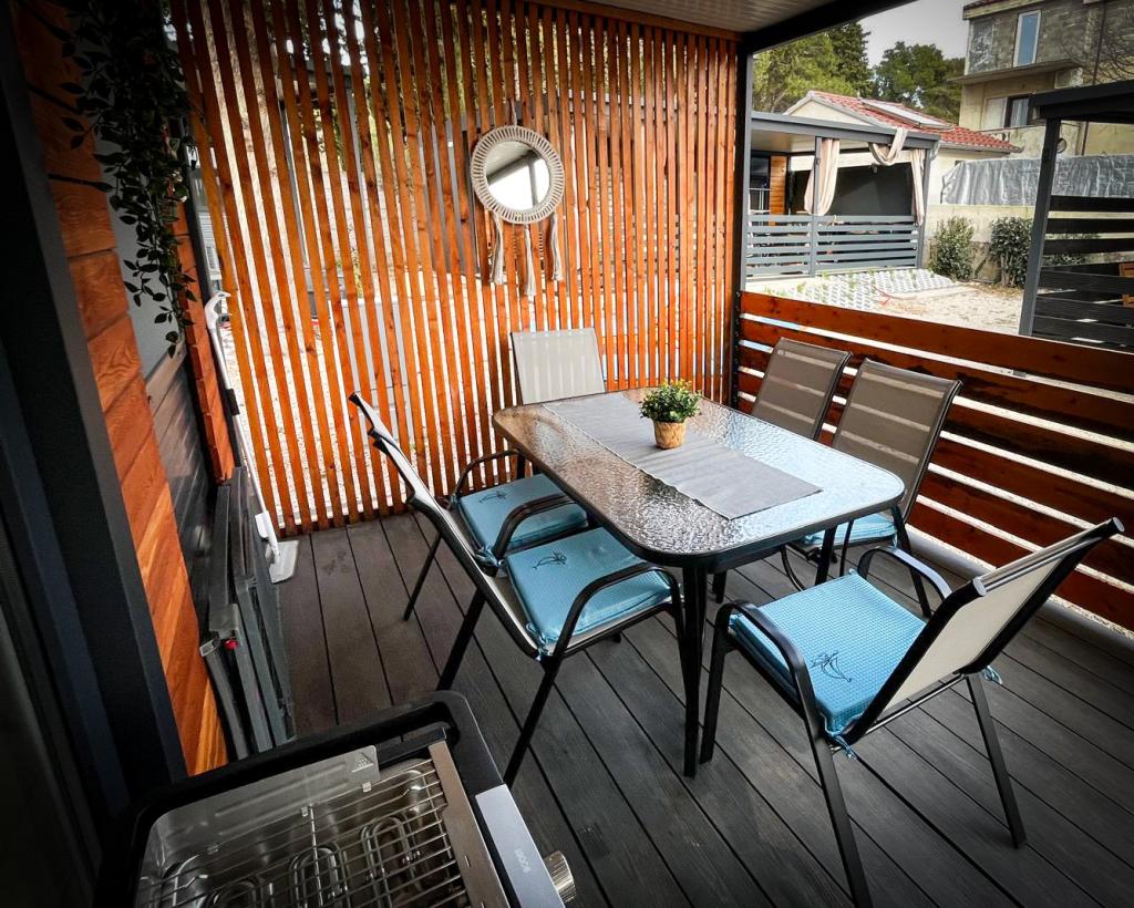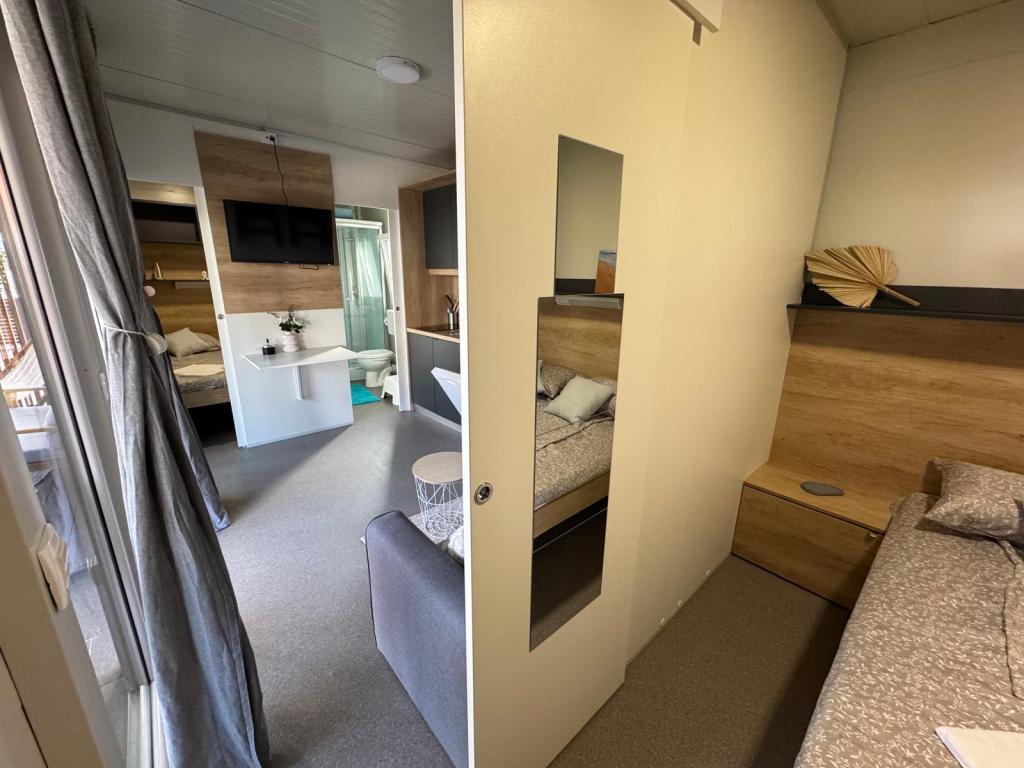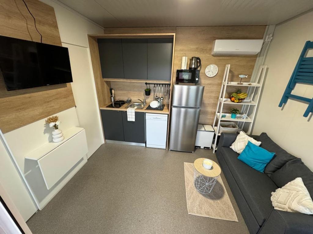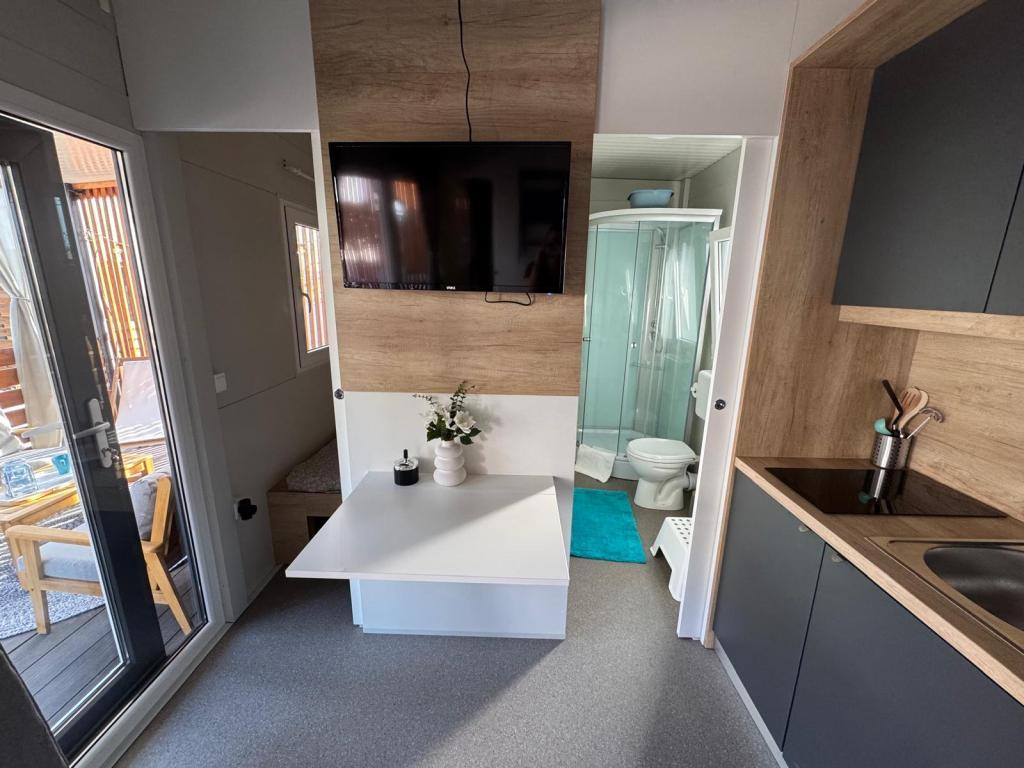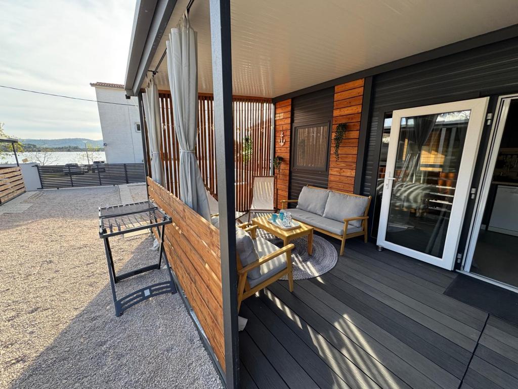 Nos mobil-homes Marea sont conçus pour vous offrir des vacances sereines, confortables et placées sous le signe de la détente. Chaque mobil-home est décoré avec soin et entièrement équipé pour un séjour agréable, que vous soyez en famille ou en couple, en quête d'intimité, de calme et de tout le confort d'une maison moderne en bord de mer. Situés dans un petit camping familial clôturé, à seulement 30 mètres de la plage, dans la paisible ville de Turanj, ils sont entourés de verdure et baignés d'une douce atmosphère méditerranéenne. Équipements et services des deux mobil-homes : Deux chambres avec lits doubles Cuisine entièrement équipée (plaques à induction, lave-vaisselle, grand réfrigérateur) Séjour : canapé-lit, smart TV, Wi-Fi (Starlink), climatisation Salle de bain : douche, serviettes, sèche-cheveux Grande terrasse avec mobilier de jardin et transats Parking sécurisé (Marea 1 - Emplacement n° 3 | Marea 2 - Emplacement n° 5) Cadeau de bienvenue Les mobil-homes sont climatisés et disponibles toute l'année, ce qui en fait un choix idéal pour des vacances d'été, mais aussi pour une escapade hivernale paisible au bord de la mer.