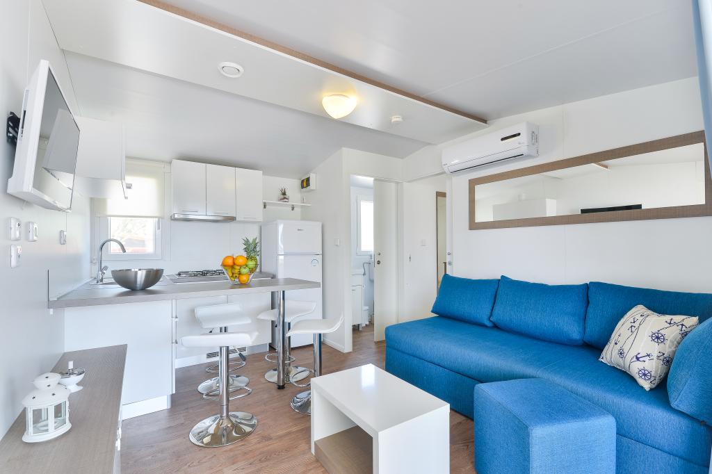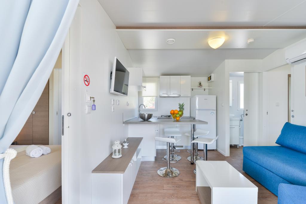 Mobil-home entièrement équipé de façon moderne à 40 m de la mer à Turanj. Le mobile home est situé dans un petit camp dans un quartier calme de Turanj en bord de mer. La maison est entièrement équipée et dispose de deux chambres, deux salles de bain, grande terrasse, grill, internet.
