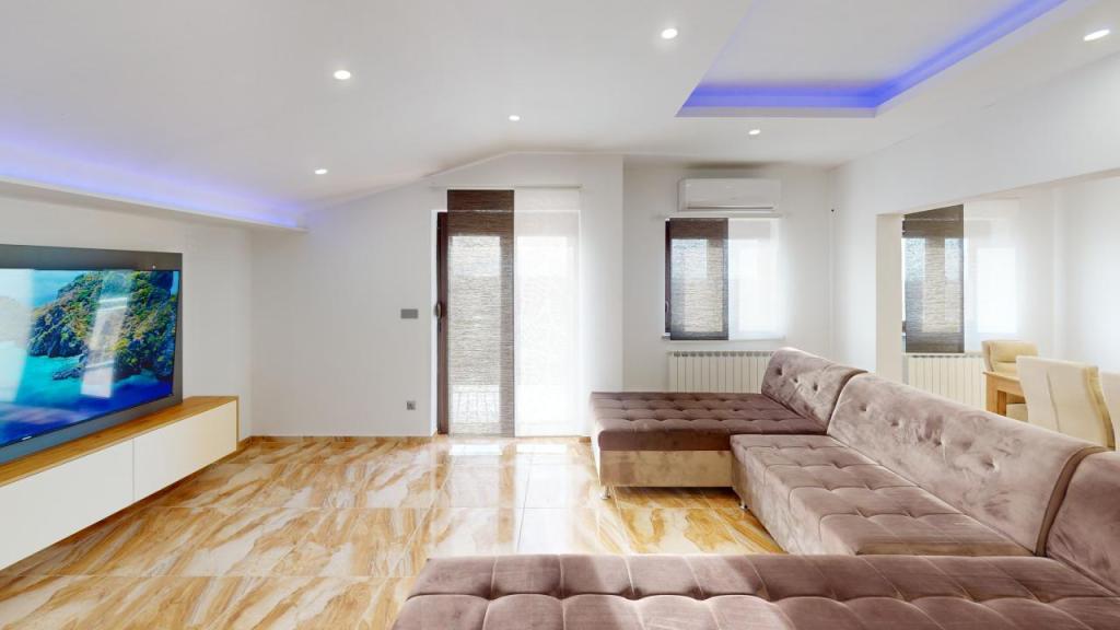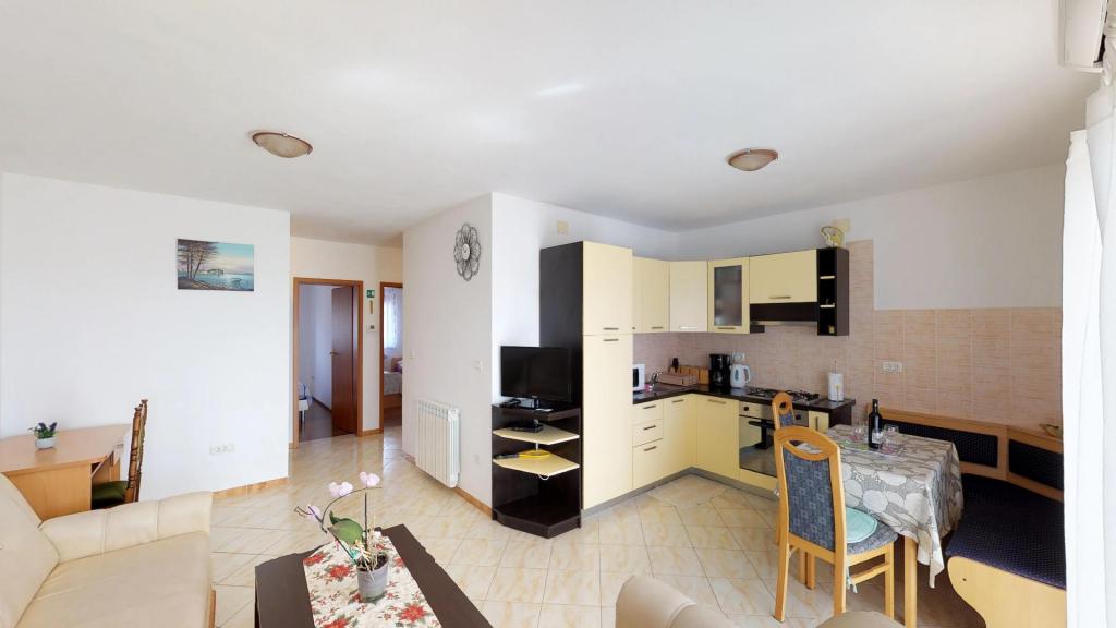 L'appartement, récemment rénové, avec deux chambres, grand salon, salle de bains et deux grandes terrasses. L'appartement est situé au rez de chaussée et donne sur la mer et la forêt, à seulement 4 km du centre d'Umag dans un petit village Vilanija. Venez vous détendre dans un environnement paisible, loin du bruit de la ville.