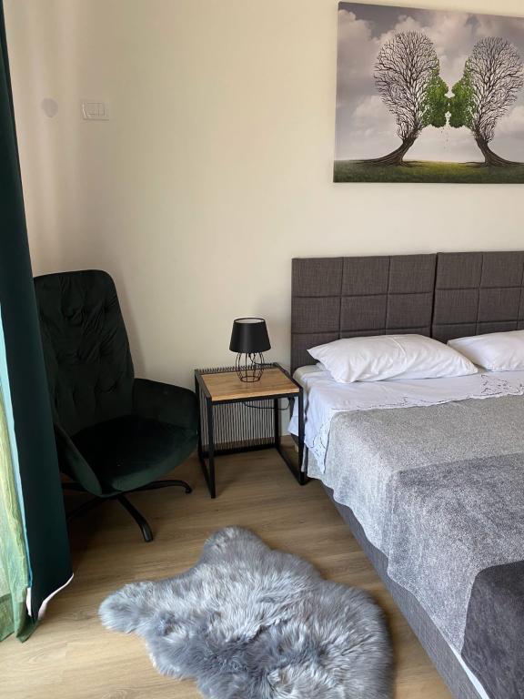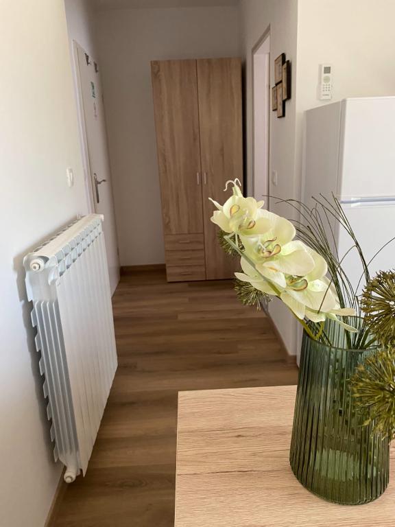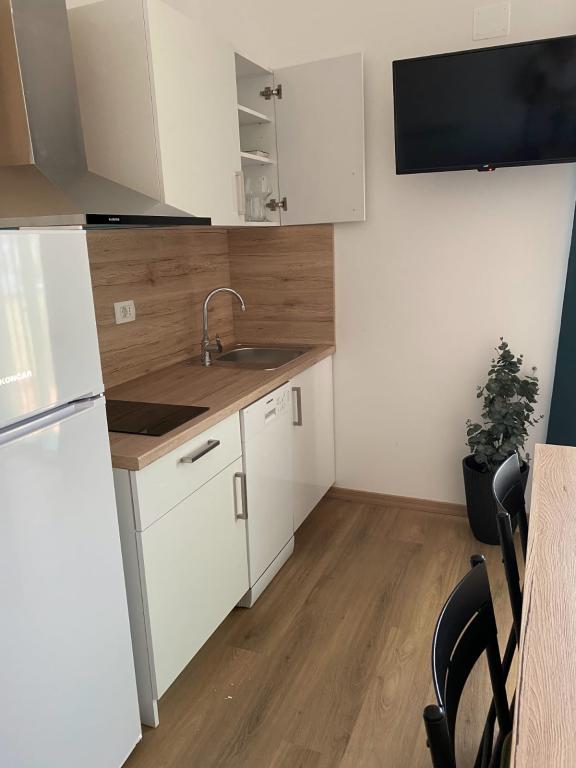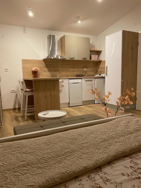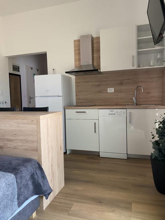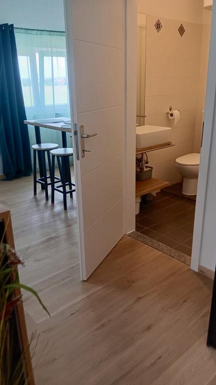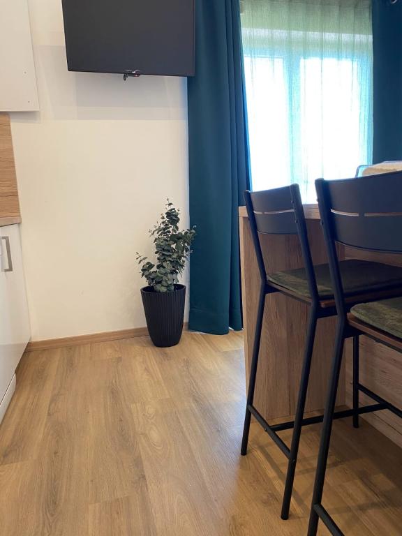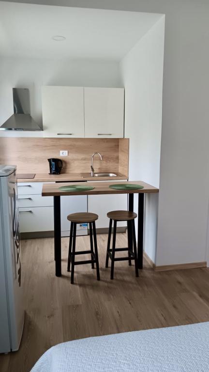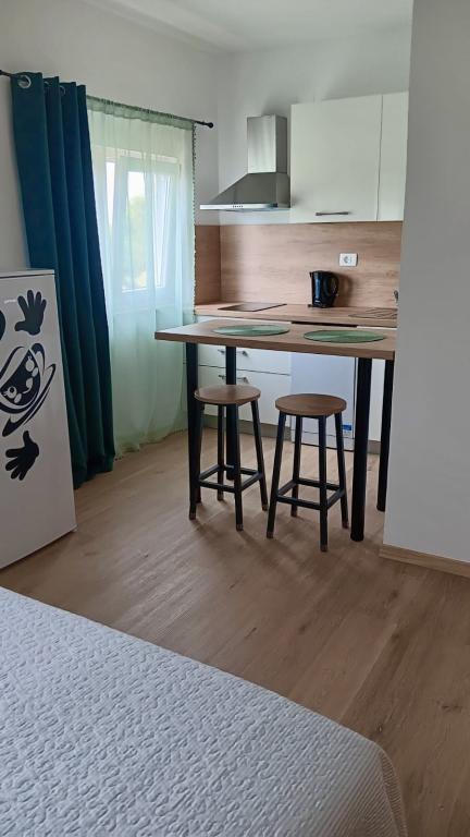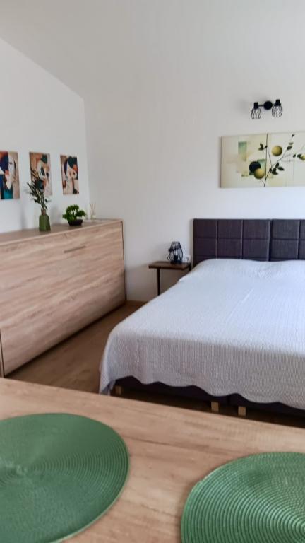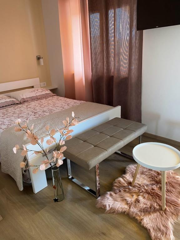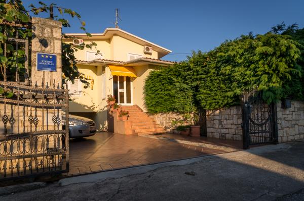 Nos studios offrent un confort complet pour 2 personnes, et se composent d'un espace nuit, d'un coin cuisine et d'un WC. Ils sont équipés de la télévision par satellite, de la climatisation, d'ustensiles de cuisine et de linge de lit. Nous n'avons pas la possibilité d'ajouter un club enfants. Un parking est prévu dans la cour.