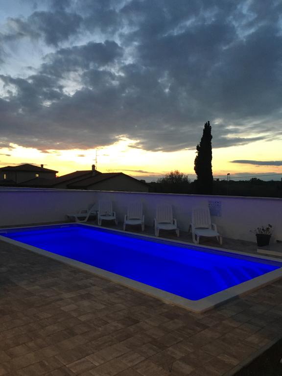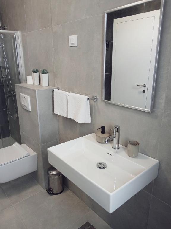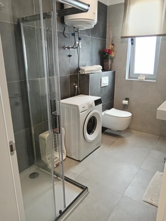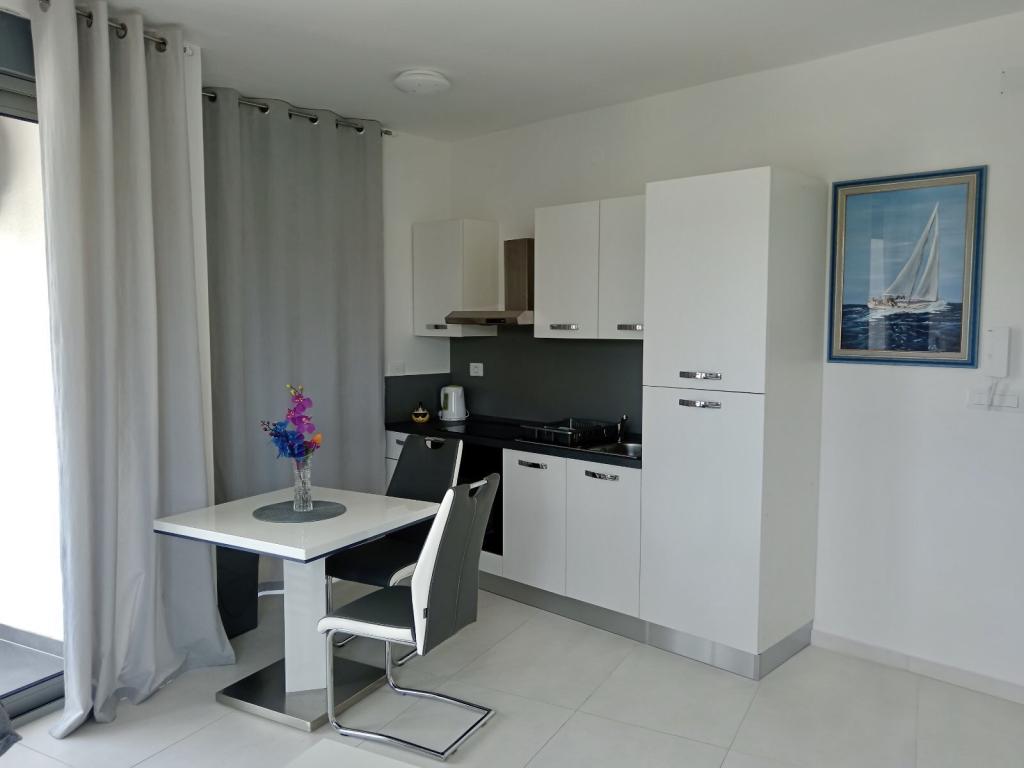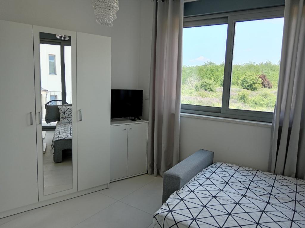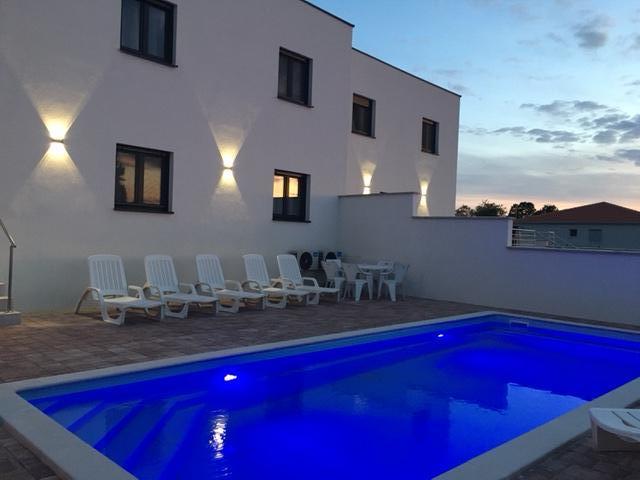Les appartements Mirella 4 sont situés dans la résidence Lavande nouvellement construite avec vue sur la mer et une belle vue sur le coucher du soleil. Pour la mer et la belle plage de sable est à seulement 150m. Commerces, boulangerie et restaurants à 200m. Au centre d'Umag à 3 km. Le long de la mer, il y a une promenade jusqu'au centre d'Umag et la possibilité est le transport en train touristique. Les appartements sont climatisés et entièrement équipés avec tous les appareils. Salle de bain avec douche massante, lave-linge, sèche-cheveux, fer à repasser. Cuisine avec lave-vaisselle, micro-ondes, cafetière, bouilloire, grand réfrigérateur avec congélateur et tout le reste pour que les clients se sentent chez eux. Une connexion Internet et un parking sécurisé sont disponibles gratuitement. Le prix comprend l'utilisation de la piscine, des transats, de la douche, des deux places, de la table et des chaises dans la partie couverte de la terrasse au bord de la piscine. Merci d'avoir choisi Apartments Mirella, j'espère qu'en retour nous satisferons vos souhaits pendant votre séjour dans nos appartements. Notre objectif est votre satisfaction et votre recommandation. Chers clients, bienvenue aux appartements Mirella!
