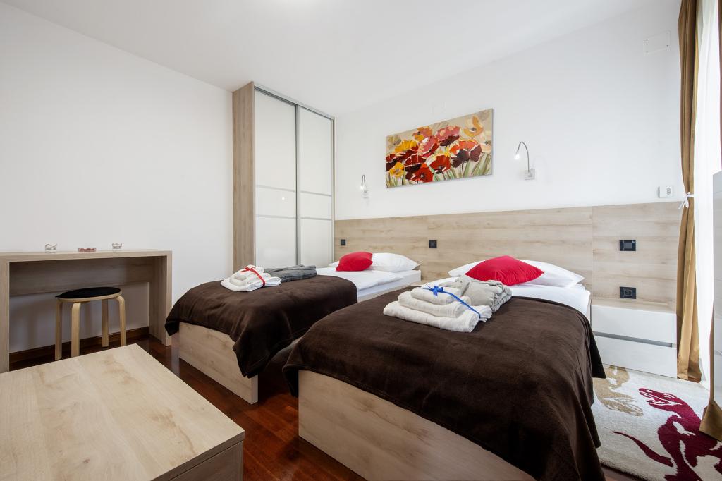 Les appartements de luxe Ratkajec sont parfaits pour les familles, les partenaires commerciaux, les sportifs ou les particuliers en raison des installations qu'ils offrent. Ces appartements modernes sont situés à Varaždin, à environ 1,7 km du centre-ville. Il y a un parking clôturé à côté du bâtiment, qui est sous surveillance vidéo. L'appartement est climatisé et équipé du chauffage central ainsi que d'un lave-vaisselle et lave-linge, il peut accueillir jusqu'à 6 personnes. L'appartement dispose de deux chambres, une avec un lit double, et l'autre avec 2 lits simples + lit d'appoint dans le séjour. Le prix de l'appartement comprend un espace bien-être avec baignoire hydromassante, sauna, transats et appareils de fitness. En outre, d'autres installations telles qu'un sac de boxe, des fléchettes et un baby-foot sont incluses. Dans les environs de l'appartement, vous trouverez des magasins, des cafés, des restaurants proposant une offre gastronomique variée de plats et de boissons traditionnels, ainsi que de nombreux sites culturels.