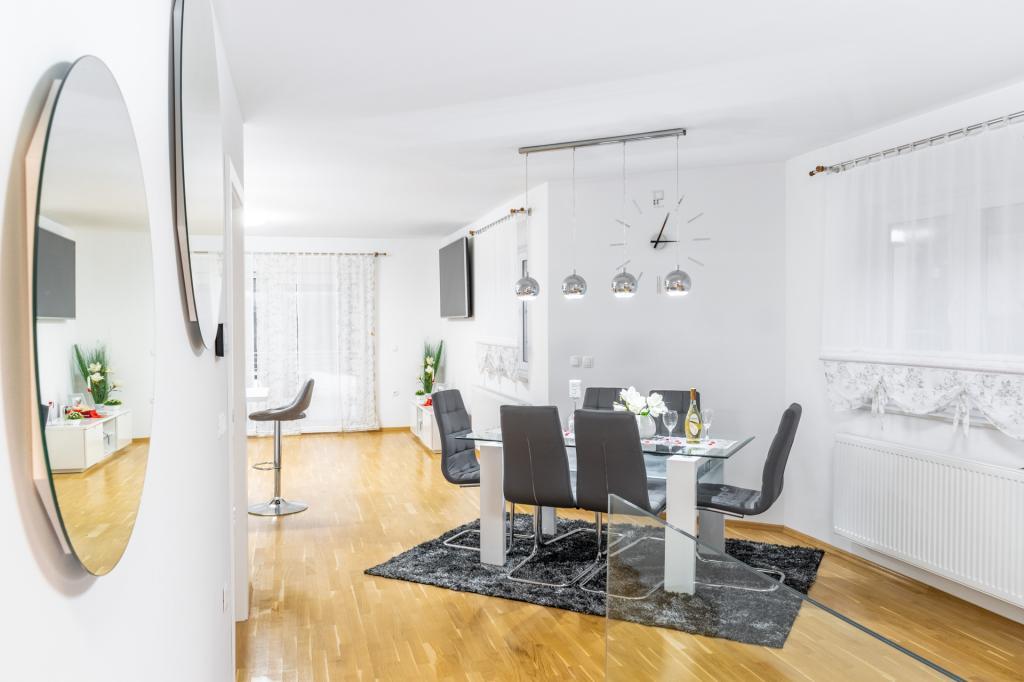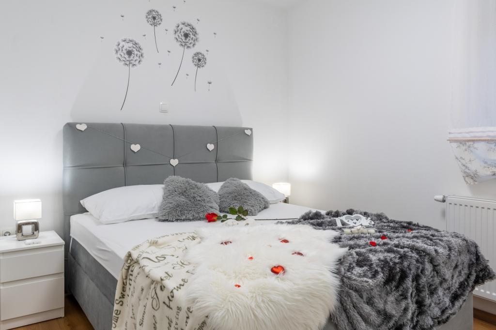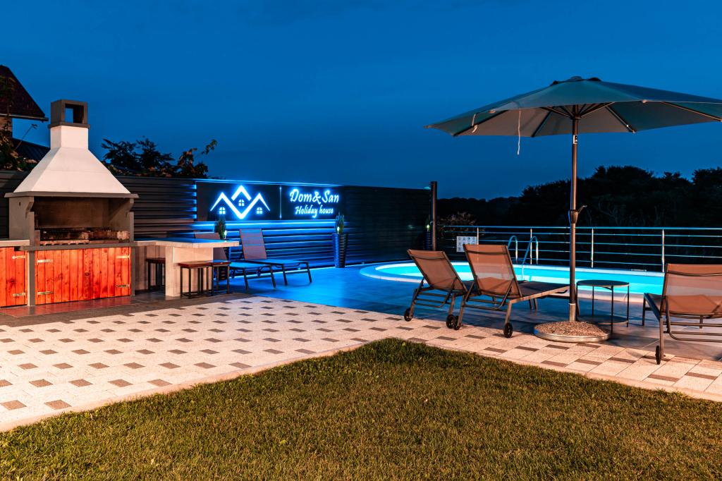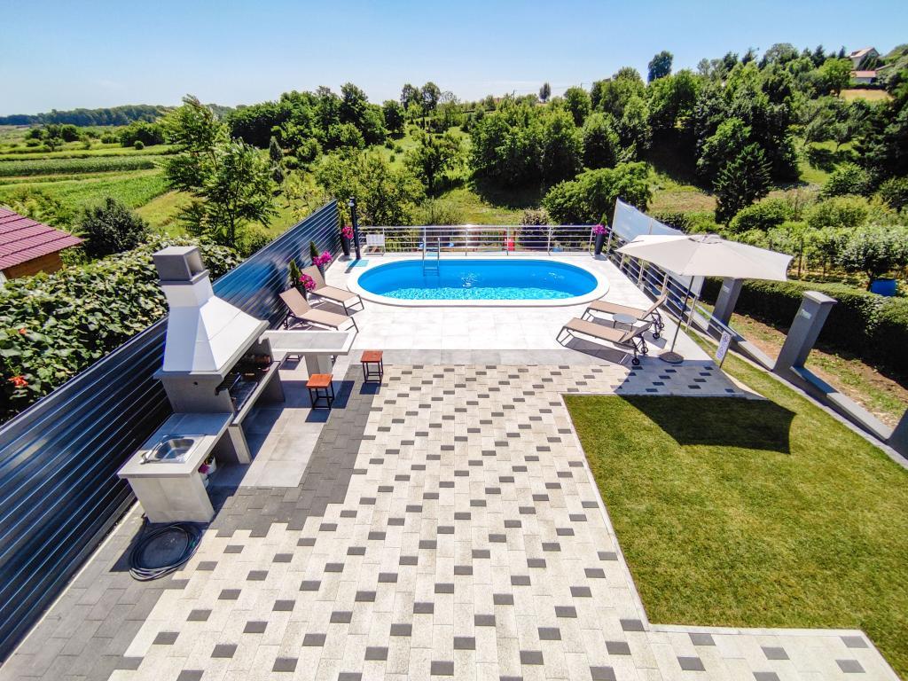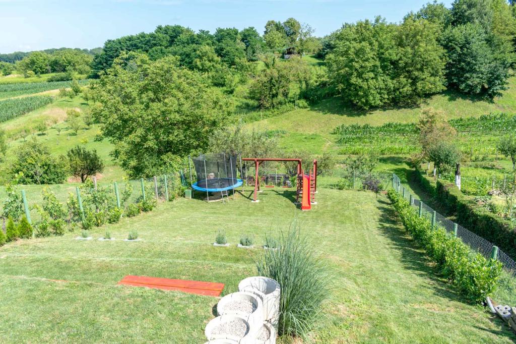 La maison de vacances Dom&San avec une piscine et un emplacement très proche de la ville baroque de Varaždin et de nombreuses activités est idéale pour s'évader de la réalité. Détendez-vous dans le sauna ou le jacuzzi intérieur et profitez de vos vacances. Grâce à la piscine, vous êtes confortablement rafraîchi ici même pendant les jours les plus chauds de l'année. La piscine offre un rafraîchissement bienvenu et la terrasse couverte vous invite à vous détendre à l'ombre avec l'odeur du barbecue et une boisson rafraîchissante. Vos enfants seront ravis du trampoline, du toboggan, de la tour d'escalade et de la cour spacieuse, ils apprécieront donc certainement de jouer dans la nature au grand air. La maison se compose de deux chambres, d'une salle de bain, d'un spacieux salon climatisé avec cuisine et salle à manger et d'une salle de détente avec jacuzzi et sauna. Les chambres lumineuses et modernes sont extrêmement bien équipées, selon les dernières normes du monde de l'intérieur. L'intérieur crée une atmosphère détendue et agréable pour rendre vos vacances aussi agréables que possible.