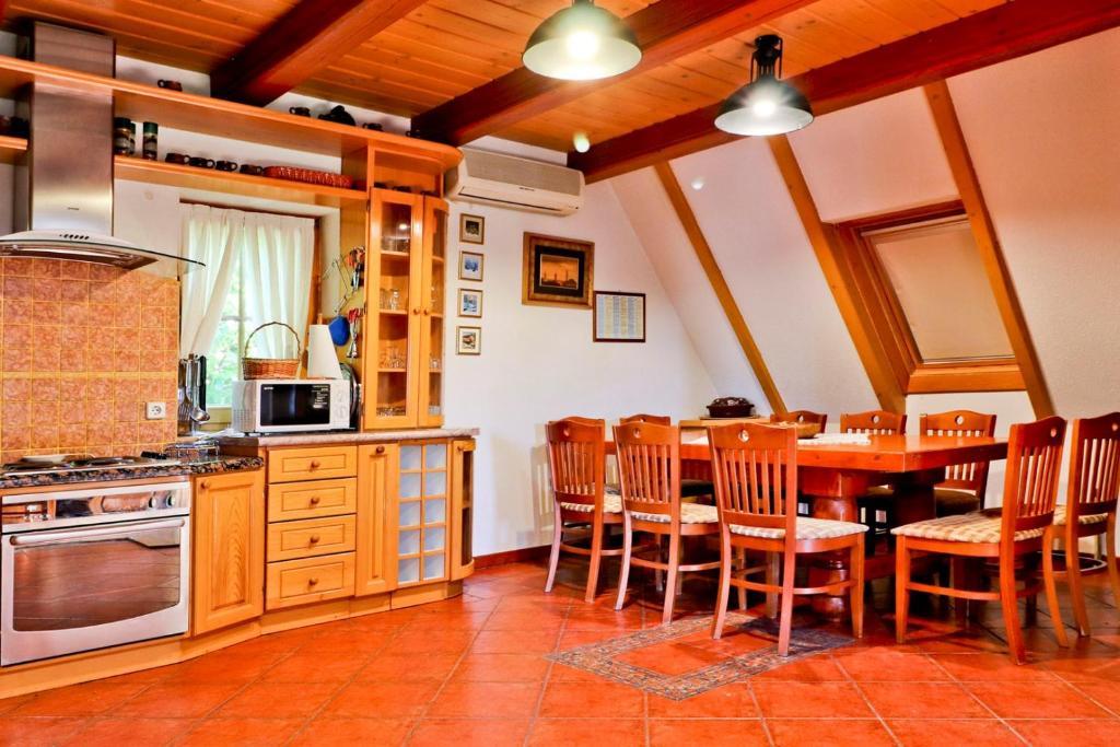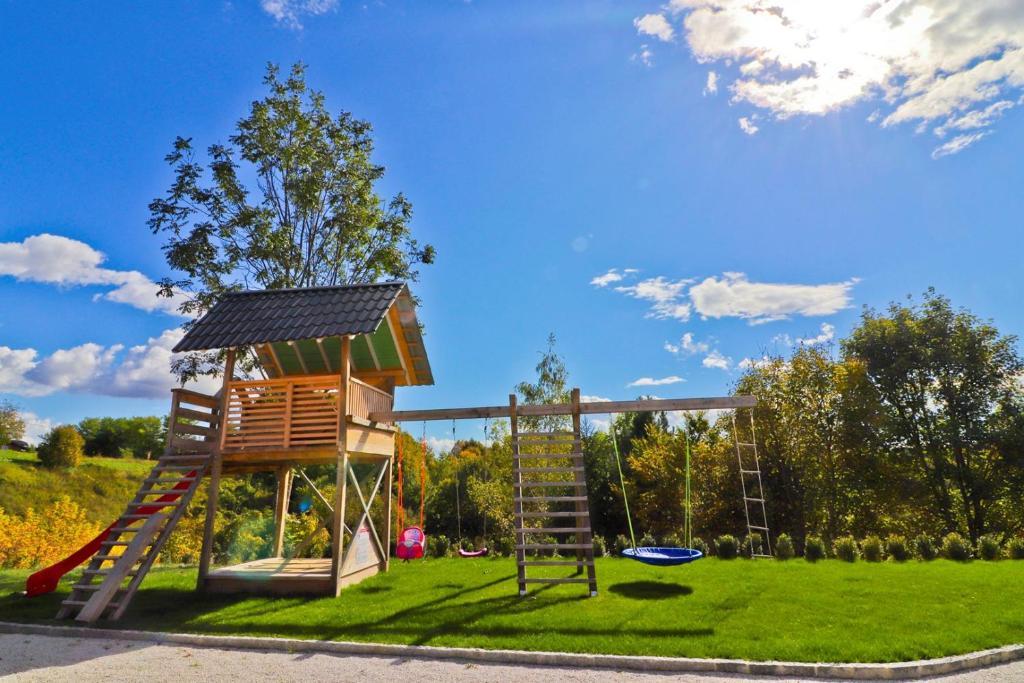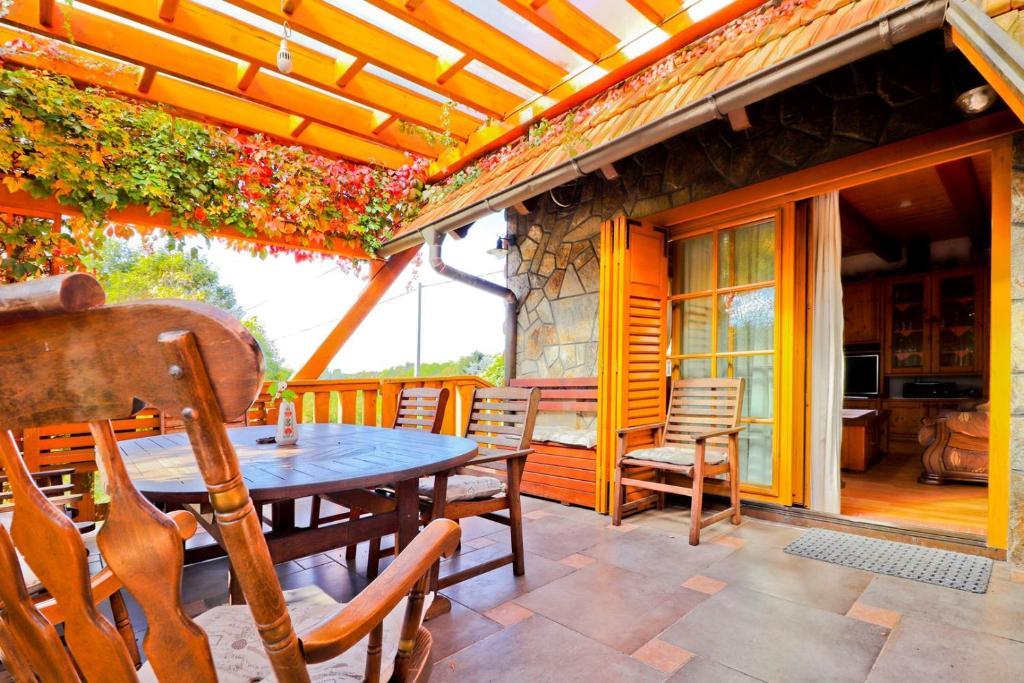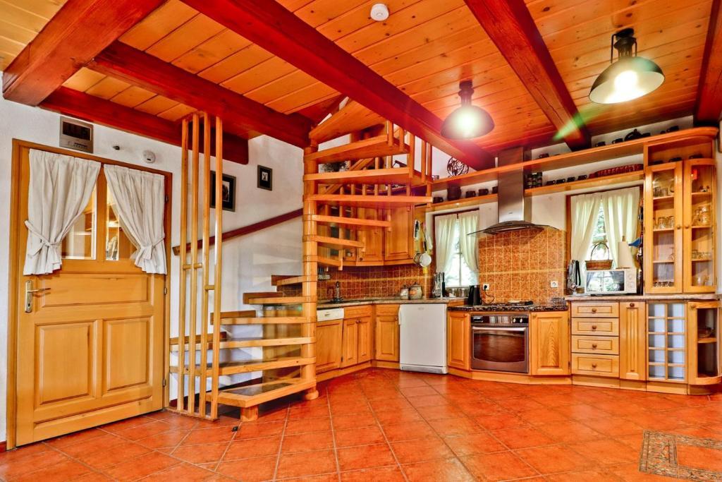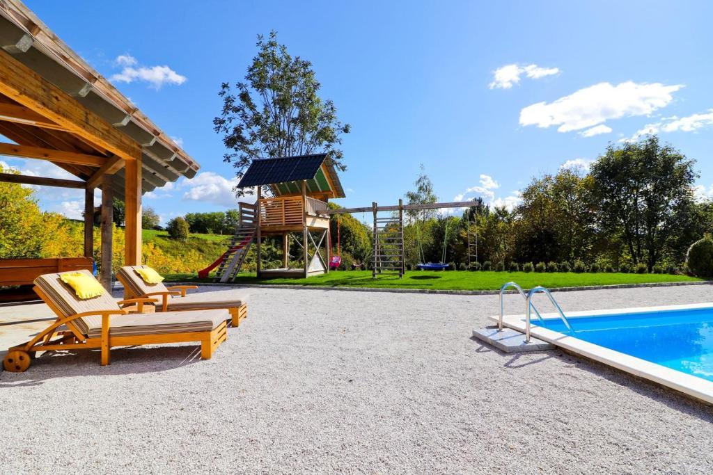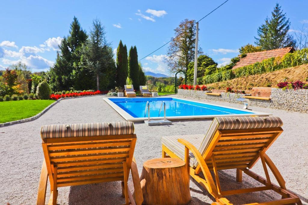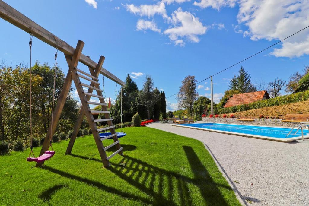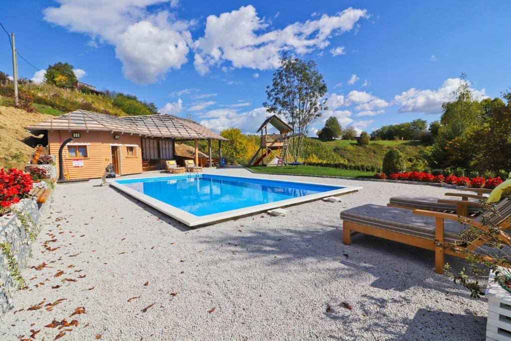La maison de vacances Grga avec jacuzzi et piscine est située à Gornja Voća et dispose d'un jardin, d'une piscine extérieure et d'une vue sur les montagnes. Cet établissement dispose d'un accès à un balcon, d'une table de ping-pong, d'un parking privé gratuit et d'une connexion Wi-Fi gratuite. Ce gîte climatisé dispose de 3 chambres, d'une télévision par satellite, d'une salle à manger, d'une cuisine avec réfrigérateur et d'un salon. Les serviettes et le linge de lit sont inclus dans le gîte. Vous pourrez utiliser le sauna de la maison de vacances. Le parcours de golf Ptuj est à 44 km du chalet Grga avec jacuzzi et piscine. L'aéroport le plus proche est l'aéroport Edvard Rusjan Maribor, à 50 km de l'hébergement.