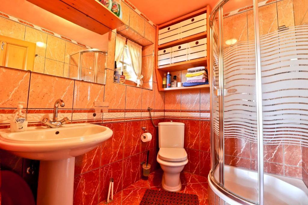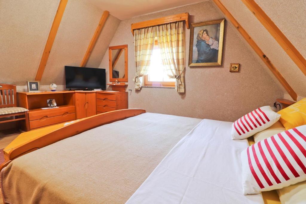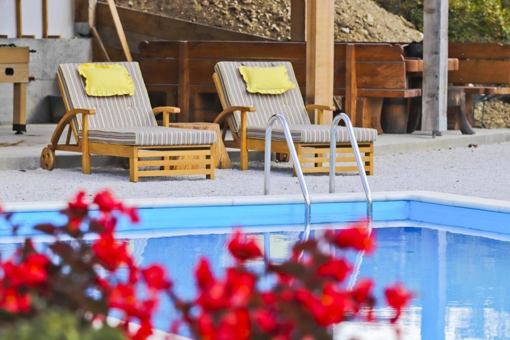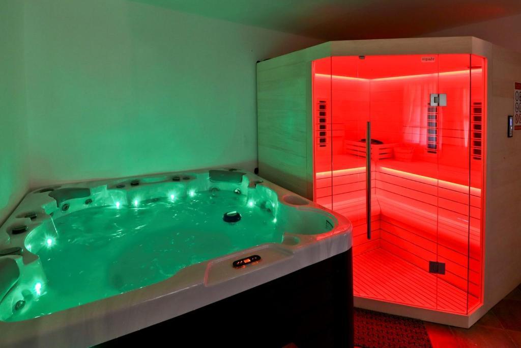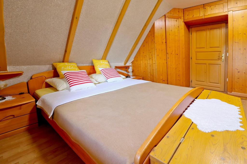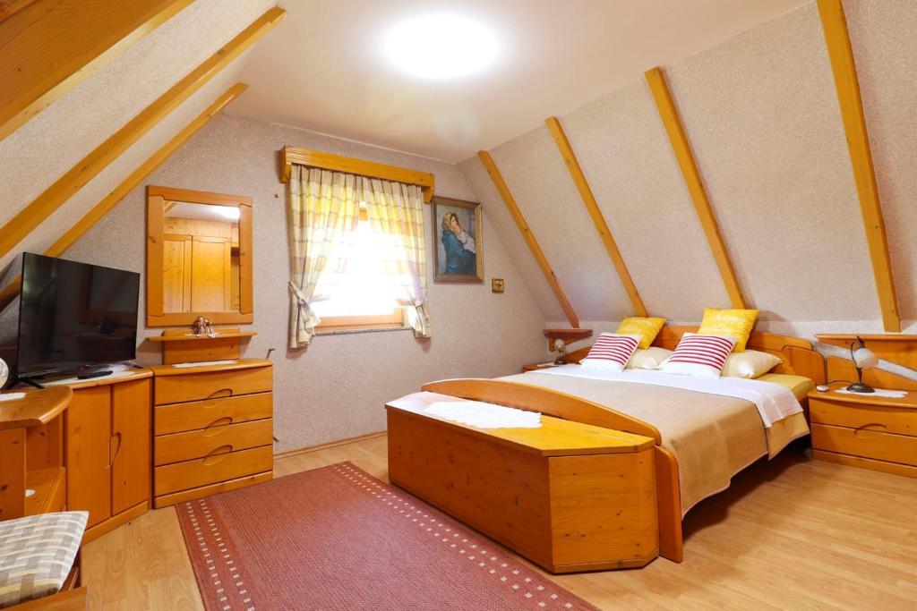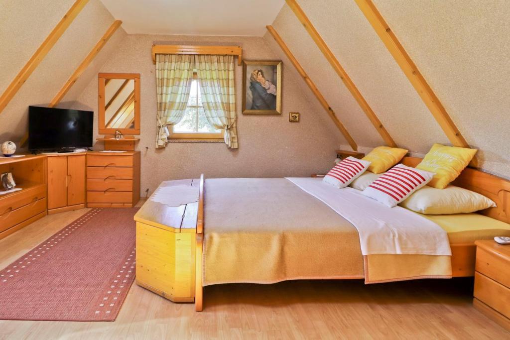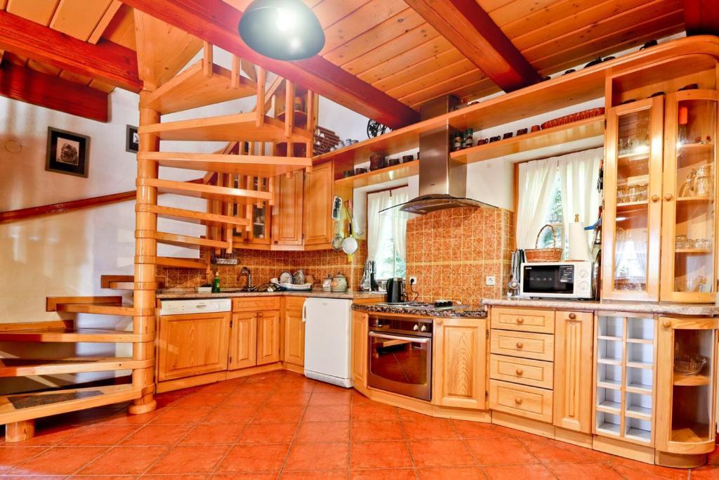 La maison de vacances Grga avec jacuzzi et piscine est située à Gornja Voća et dispose d'un jardin, d'une piscine extérieure et d'une vue sur les montagnes. Cet établissement dispose d'un accès à un balcon, d'une table de ping-pong, d'un parking privé gratuit et d'une connexion Wi-Fi gratuite. Ce gîte climatisé dispose de 3 chambres, d'une télévision par satellite, d'une salle à manger, d'une cuisine avec réfrigérateur et d'un salon. Les serviettes et le linge de lit sont inclus dans le gîte. Vous pourrez utiliser le sauna de la maison de vacances. Le parcours de golf Ptuj est à 44 km du chalet Grga avec jacuzzi et piscine. L'aéroport le plus proche est l'aéroport Edvard Rusjan Maribor, à 50 km de l'hébergement.