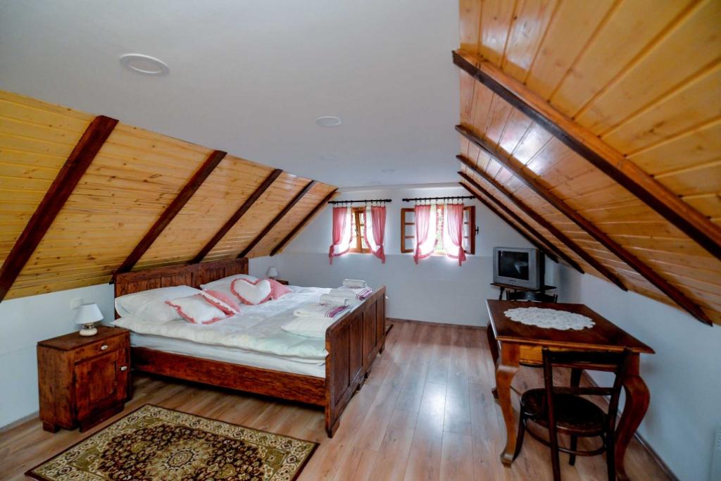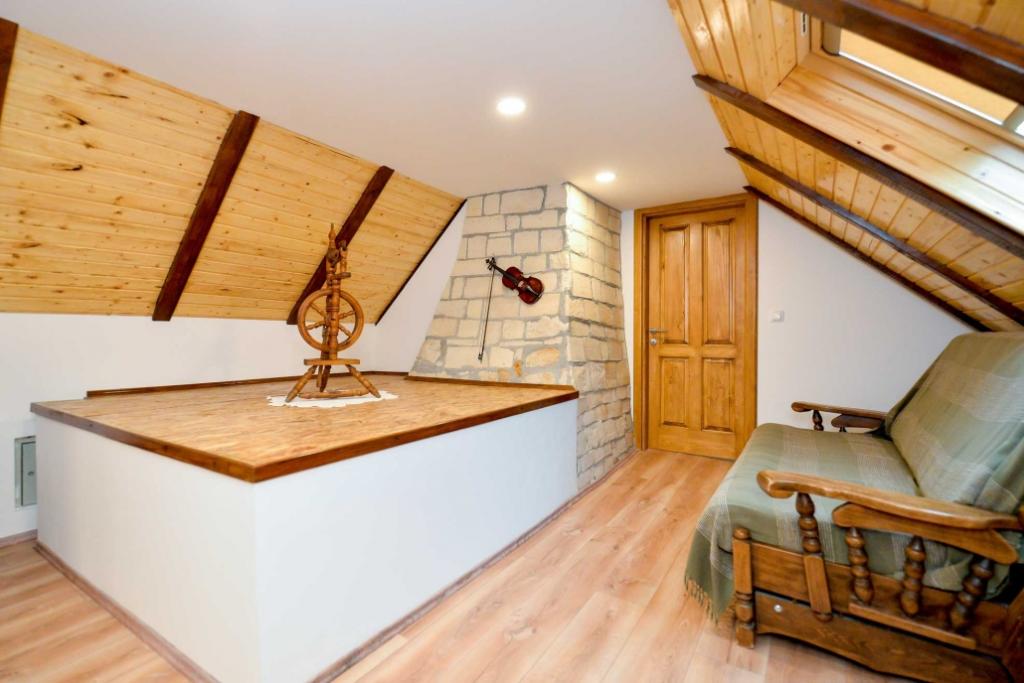 Une maison autochtone construite en 1778 est à louer, située à Hrvatsko zagorje (comté de Varaždin) à Vinica Breg 97 (à 2 km de la route Varaždin - Maribor). La maison a été récemment rénovée et les matériaux de construction traditionnels (pierre de vinicite et bois) ont été conservés. Au rez-de-chaussée de la maison il y a un grand salon avec une salle à manger, une cuisine, une salle de bain avec WC, un sauna et un couloir, tandis que dans le grenier il y a une grande chambre et un hall spacieux (91 m2 au total). La maison dispose d'un lit double et d'un lit d'appoint, elle est donc adaptée pour accueillir une famille. Il y a une place de parking sécurisée et un barbecue couvert avec une petite terrasse dans la cour. Dans les environs de la maison, il y a une belle nature, donc la maison est idéale pour l'hébergement des amoureux de la nature, des chasseurs (près de LD Zelendvor), des pêcheurs (près de la Drava et de l'étang de Vinica). Non loin de la maison se trouve le célèbre Arboretum d'Opeka, la grotte de Vindija et d'autres objets culturels et sacrés.