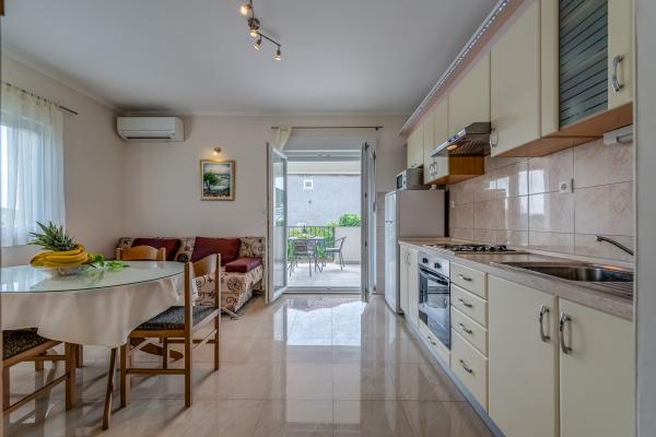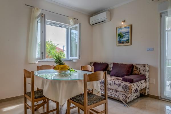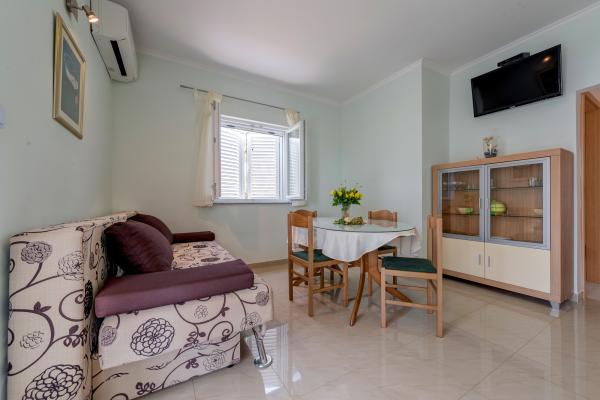 Appartements conforme à la description. Propre, bien entretenu. Les propriétaires très agréable et une terrasse pomocni.Przepiękny où vous pourrez vous détendre sur les chaises longues et profiter de la mer magnifique. Equipé de tout ce dont vous avez besoin. Zewnętrzy une douche et utiliser le grill aussi. Proche de la plage, des commerces aussi. Chaque matin, vous pouvez acheter du poisson frais. Très joli petit endroit où le climat est parfait, le vent souffle de la mer, ce qui est rare en Croatie. Malgré le temps chaud, vous pourrez vous reposer et se détendre. Le seul inconvénient est le fait que l'appartement ne dispose pas d'un endroit ombragé pour garer votre voiture. En dehors de cela, tout grand. La route vers le sommet de la Marina n'est pas onéreux. Il vaut la peine de la baie de l'ancienne Trogir, la route effrayant, mais la vue comme dans les Caraïbes. Nous y reviendrons certainement là encore.