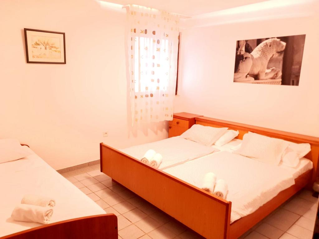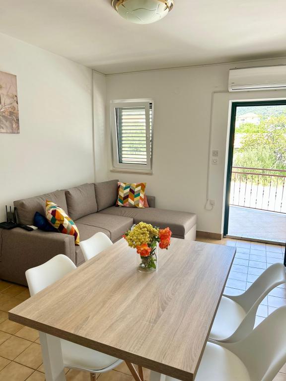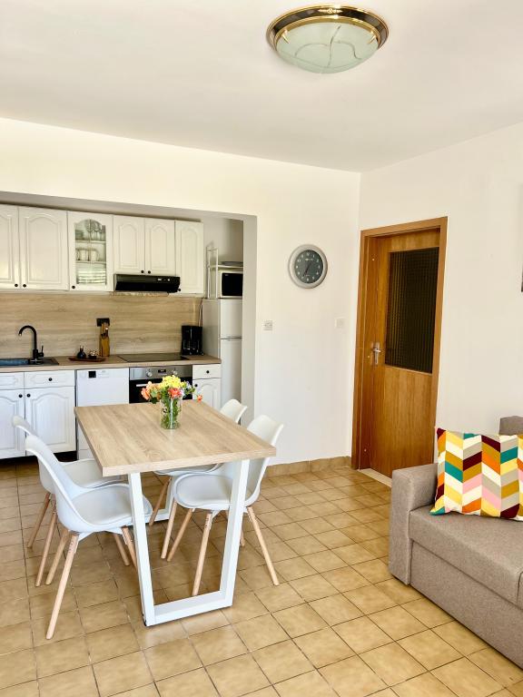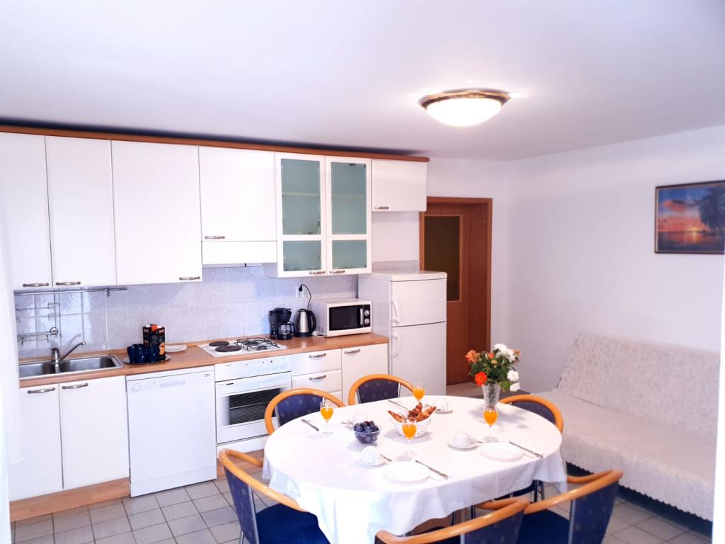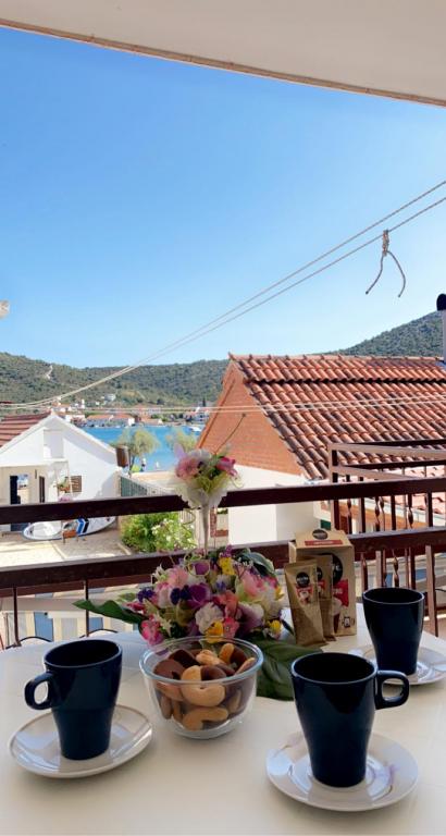 Trois Palms Apartments sont situés dans le centre de la baie et Vinisce sur la plage littéralement une douzaine de marches de la mer et plage de galets, qui va doucement vers les profondeurs de la mer de cristal bleu, si je rentre très facile pour les enfants, les personnes âgées et les handicapés. Elles sont équipées avec tout le nécessaire pour un séjour plus long et plus détendue, afin de se sentir à la maison. Cour d'entrée très grande offre des possibilités de vie en plein air à l'intérieur du bâtiment et de plaisir, que les adultes et les enfants. Garer votre voiture est également prévu en face de l'appartement. Appartements 2 et 5 sont adaptés pour les personnes handicapées restent parce qu'ils sont sur le terrain, tandis que d'autres sur le plancher. Appartement n ° 1 est caractérisé par des terrasses de 12 mètres carrés avec une nature magnifique. Tous les clients peuvent utiliser le barbecue.