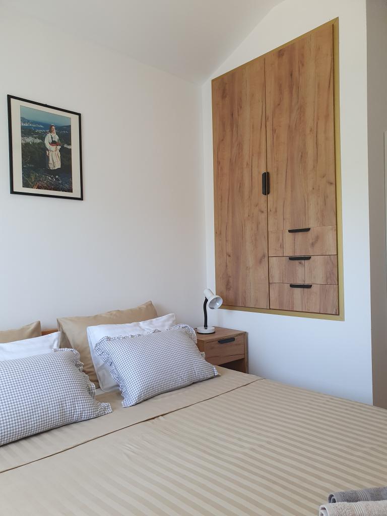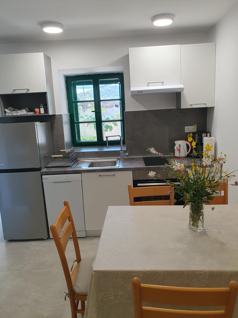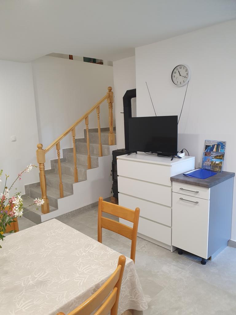 La maison de vacances « Kaja » est située dans la vieille ville, au calme, d'un petit village dalmate. Elle est entièrement équipée pour un séjour agréable. Un parking et une terrasse ombragée se trouvent juste à côté de la maison. La maison est répartie sur deux étages, reliés par un escalier intérieur. Au rez-de-chaussée, vous trouverez une cuisine entièrement équipée avec salle à manger, un salon et des toilettes. À l'étage, deux chambres doubles et une salle de bains avec toilettes. L'une des chambres donne sur un balcon offrant une vue panoramique sur toute la ville. La plage est à environ 10 minutes à pied de la maison, et les commerces et restaurants sont situés à une distance similaire.