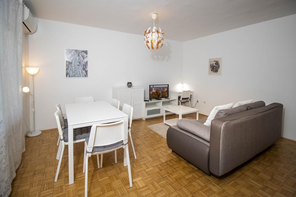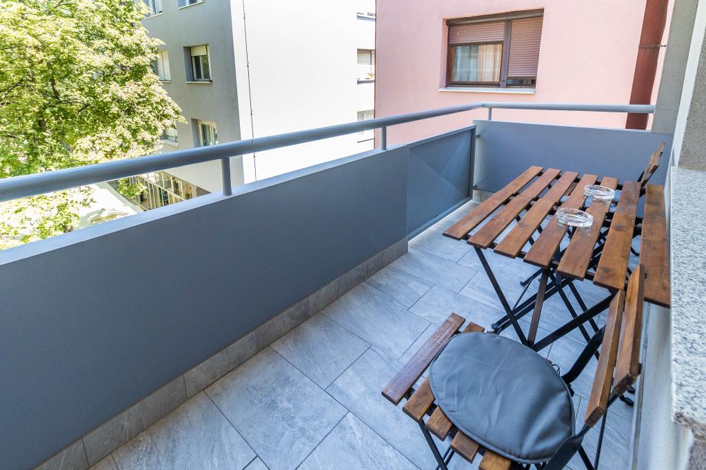 Excellent emplacement dans le centre-ville! Appartement entièrement rénové (58m2) pour un hébergement confortable pour quatre à six personnes. Grand salon (canapé pouvant être transformé en un lit d'appoint pour deux personnes), balcon, deux chambres (chacune avec un lit pour deux personnes), cuisine, salle de bain avec douche à l'italienne et dégagement. Cuisine entièrement équipée, laveuse/sécheuse, espace climatisé, wi-fi (connexion internet optique), 120 programmes TV, beau balcon...