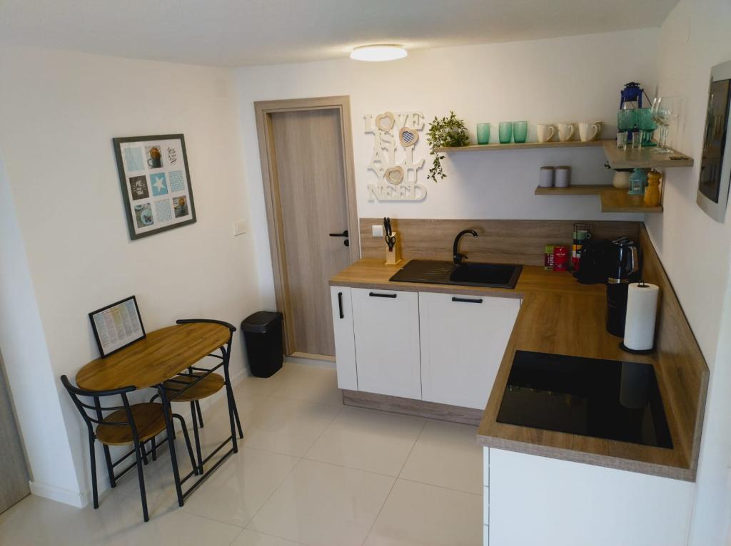 Nous sommes très satisfaits de notre séjour dans cet appartement ! Tout est impeccablement propre et bien rangé, les propriétaires sont extrêmement gentils, serviables et prêts à nous aider à tout moment. Ils ont fait preuve d'un souci du détail exceptionnel et une véritable surprise nous attendait à notre arrivée : des boissons fraîches et des cocktails nous attendaient dans le réfrigérateur. Quelques minutes à pied jusqu'à la plage et un véritable rafraîchissement dans la mer vous attend. Haut