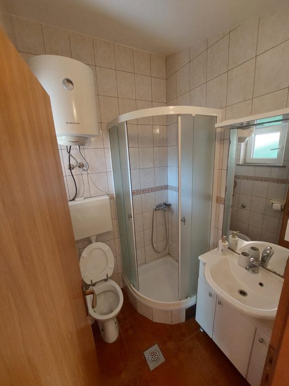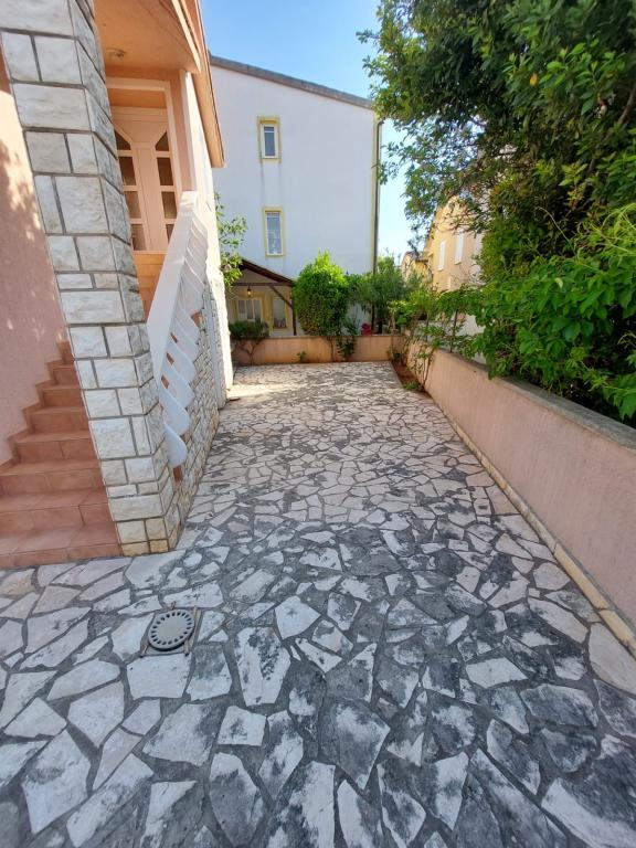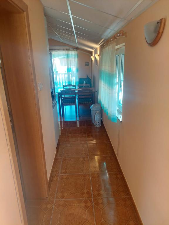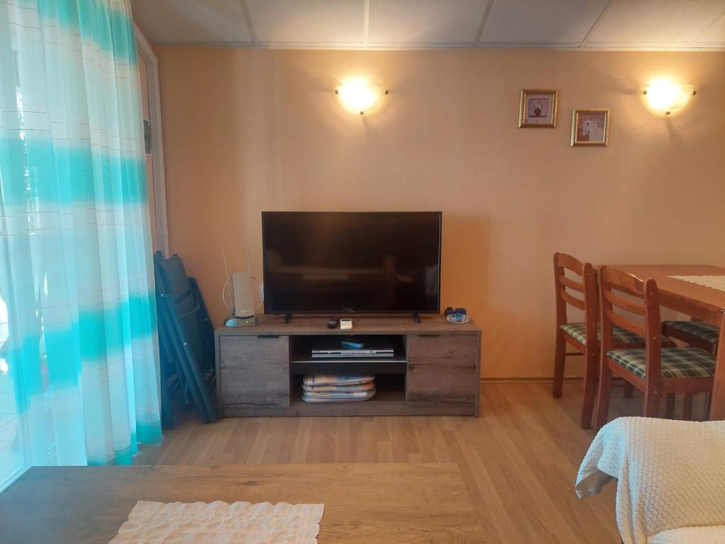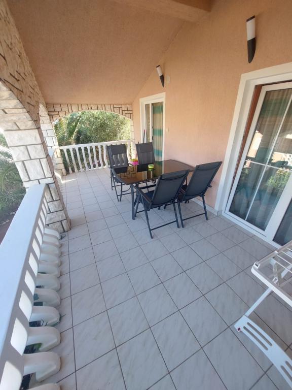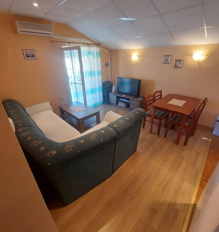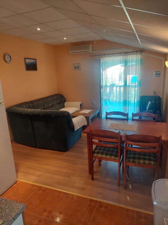 L'appartement agréablement meublé est situé sur l'île de Vir, qui propose de nombreuses activités à la fois amusantes et relaxantes. La cour est pleine de verdure et offre un parking gratuit pour votre voiture. Il est également possible d'utiliser le matériel pour un barbecue idéal. Le bâtiment comprend un salon, une cuisine, une salle de bains, deux chambres et une terrasse spacieuse. L'appartement est équipé d'appareils tels que la climatisation, Internet, Smart TV, DVD, radio, four micro-ondes, bouilloire, réfrigérateur avec congélateur, sèche-cheveux, etc. La plage est de galets, et il y a des petits galets et du sable dans la mer. Une partie de la plage est parfaitement adaptée aux enfants. La plage n'est qu'à quelques minutes et le centre à 10 minutes à pied. Un grand supermarché se trouve à 400 mètres et le restaurant le plus proche à seulement 300 mètres.