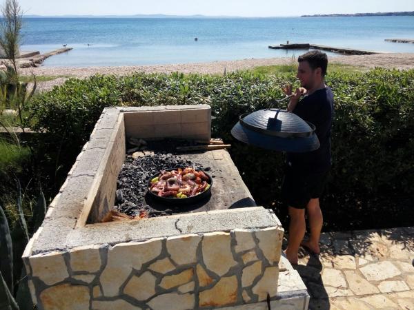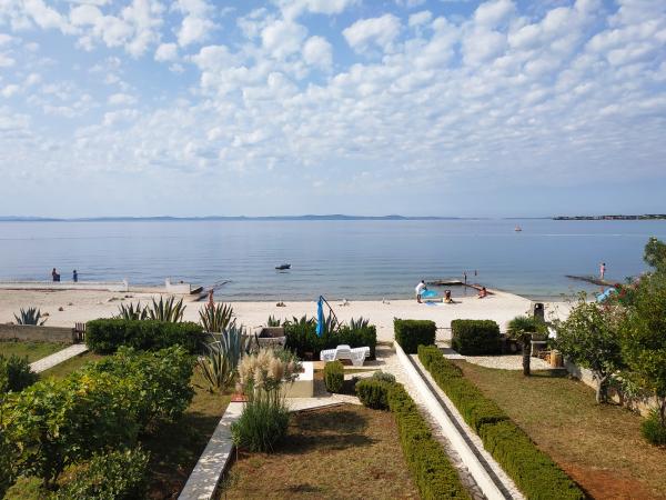 Nous avons passé des vacances dans l'appartement en 2019 avec deux jeunes enfants. L'appartement est directement sur la plage. Il y a peu de tels endroits. Magnifique vue depuis la terrasse. Il n'y a pas de route entre l'appartement et la plage. Très adapté aux enfants. Pratiquement, vous les avez toujours sur les yeux (même depuis la terrasse), même si vous n'êtes pas toujours avec eux sur la plage. Lorsque vous quittez le jardin, vous êtes sur la plage. Après quelques pas dans la mer. Donc, oreillers et chaussettes, nous avions sans escale sur la plage. Le réfrigérateur est à portée de main… à quelques pas de l'appartement… Et pas d'emballage et d'expédition sur la plage…. puis ranger et les charger à nouveau dans l'appartement !!!! Le soir, je viens de déplacer tout le fourrage sur la clôture vers le jardin de l'appartement. Cependant, si nous avons accidentellement oublié, le sympathique propriétaire l'a fait pour nous. Dans le jardin à côté de la douche de plage, cheminée pour la cuisson .. avec parasol…. Après le poisson frais quotidien, les légumes, les fruits, je suis allé voir les pêcheurs locaux. Bien sûr, le propriétaire vous en parle. L'appartement est nouvellement meublé. Il s'agit d'un studio + 1 appartement. Sur la terrasse de l'appartement un grand auvent d'ombre avec moteur et télécommande. A chaque tournant, on peut voir (également fils d'un travailleur du tourisme) qu'ils savent faire du tourisme. Les propriétaires sont très sympathiques, serviables et discrets. Tout est bien rangé, bien rangé, propre ... Chaque petite chose est prise en charge ... Il y a une promenade menant au centre-ville. Il se passe beaucoup de choses dans la ville et un concert presque tous les soirs. Il y a plusieurs magasins, boulangeries à proximité, j'avais l'habitude de faire du vélo, prêté par votre propriétaire. Bref pour nous, super, cinq. Comme on dit, il y a peu de tels emplacements. Bien sûr, nous reviendrons à la première occasion, ne serait-ce que pour respecter le délai.