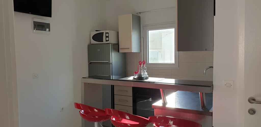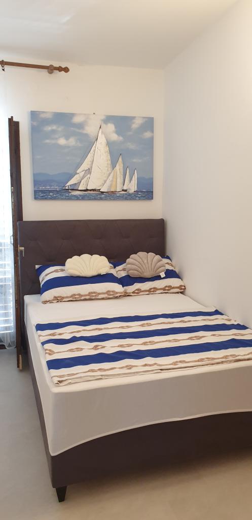 Appartement tout équipé, TV, climatisation, wi-fi, plaque à induction, four, micro-onde, bouilloire, lave-vaisselle. L'appartement est à l'étage, composé d'une cuisine, d'une salle de bain et de deux chambres, une avec un lit double et l'autre avec deux lits simples donnant sur une terrasse avec vue sur la mer. Le centre est à environ 2 km le long de la promenade en bord de mer, un magasin est à 300 mètres et un restaurant à 30 mètres. Nous nous réjouissons de votre visite et sommes toujours disponibles pour des questions et des réservations.