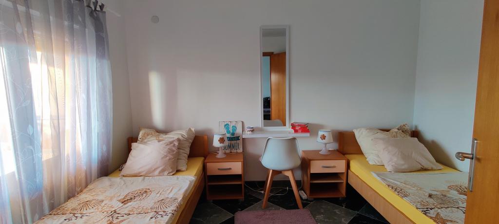 Appartement entièrement décoré de façon moderne sur le côté nord de l'île de Vir. L'île est reliée par un pont. Il est situé au premier étage d'une maison familiale, à 90 mètres de la plage de Zitna. L'appartement dispose d'une cour clôturée avec une place de parking et un grill en brique que les clients peuvent utiliser. L'appartement est équipé de la climatisation, d'une connexion Wi-Fi gratuite, d'une machine à café Dolce Gusto, d'une bouilloire et d'un distributeur d'eau.