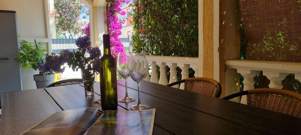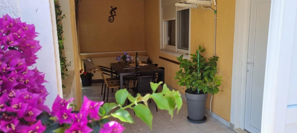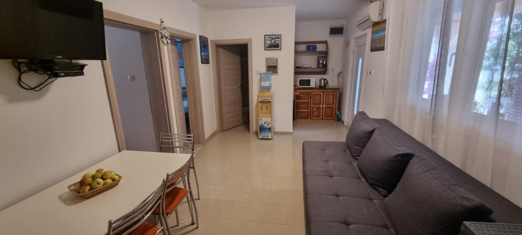 Chers invités, viennent à notre appartement complet et moderne meublé sur cette île magnifique près de Zadar. L'hébergement est situé dans un endroit calme, loin de la 250m de la plage. L'appartement est adapté pour 4-5 personnes. Les clients ont accès à une terrasse, la télévision par satellite, wi-fi, air, feu, eau, barbecue, douche extérieure, bicyclettes, linge de lit, serviettes, parking. Les vélos peuvent faire le tour de l'île et de connaître sa beauté. La plage a un bac à sable où vous pouvez jouer vos enfants pendant que vous profitez de l'ombre.