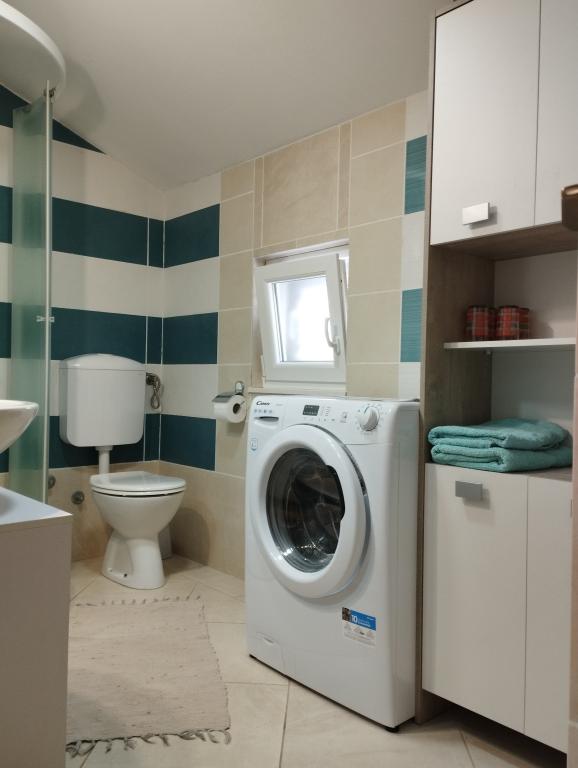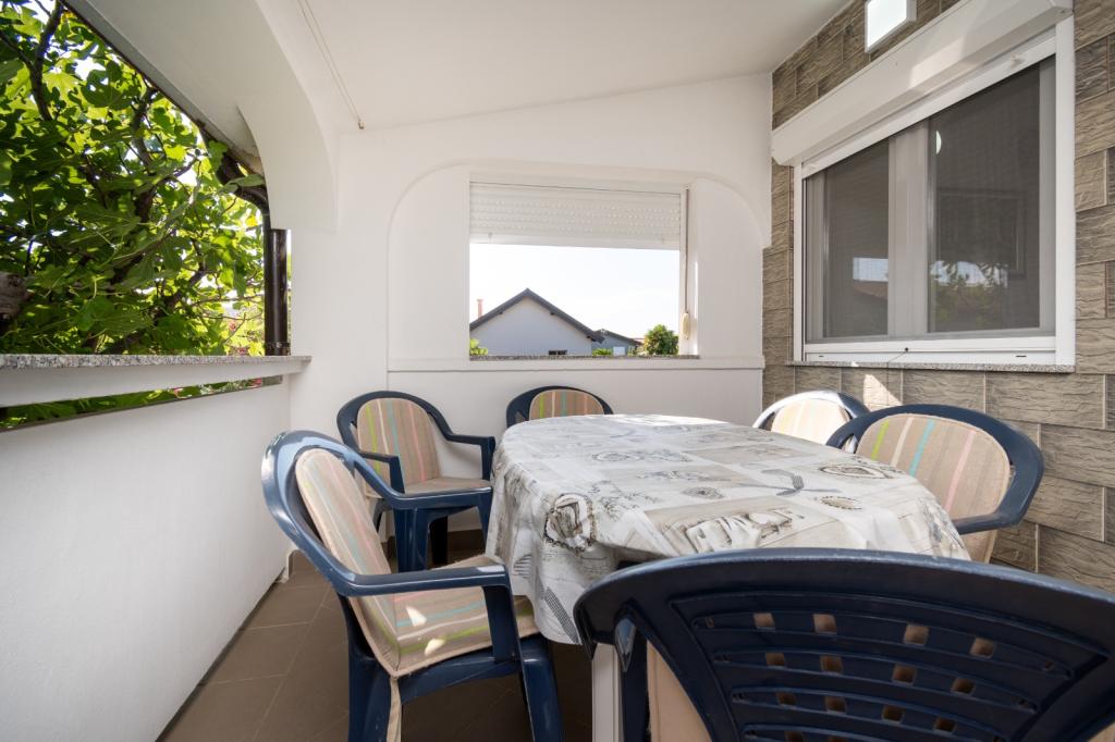 Appartement de trois pièces à louer pour 4 +1, 24. Prezida No. 2, sur le côté sud de l'île de Vir, à 100 m de la mer, parking, wi-fi, climatisation, lave-vaisselle, lave-linge, terrasse.