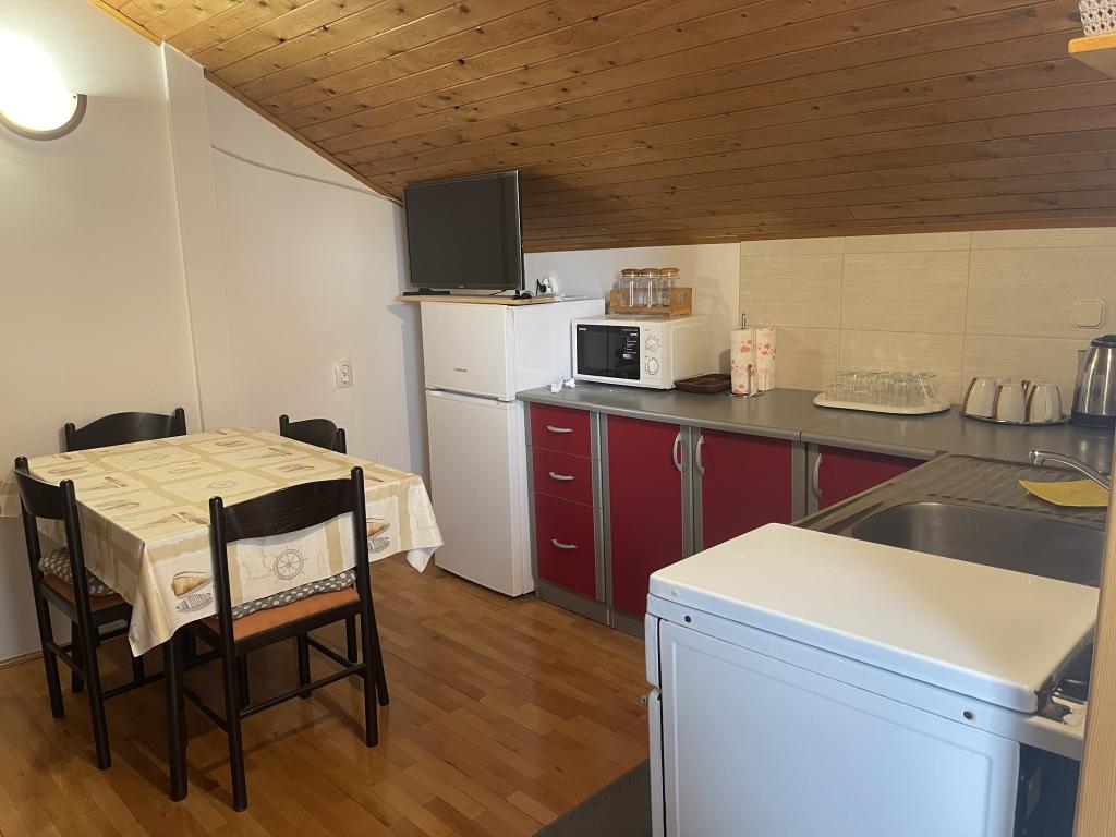 Appartement au premier étage (rez-de-chaussée) avec entrée indépendante dans une maison de vacances sur l'île de Vir, à environ 100-150 m de la plage, à 70 m du premier magasin et restaurant. L'appartement dispose d'une chambre séparée avec un lit double, d'un séjour avec cuisine où vous pouvez mettre un lit supplémentaire pour deux personnes, d'une salle de bain et d'une terrasse d'environ 15 m2. Il y a une place de parking devant le bâtiment.