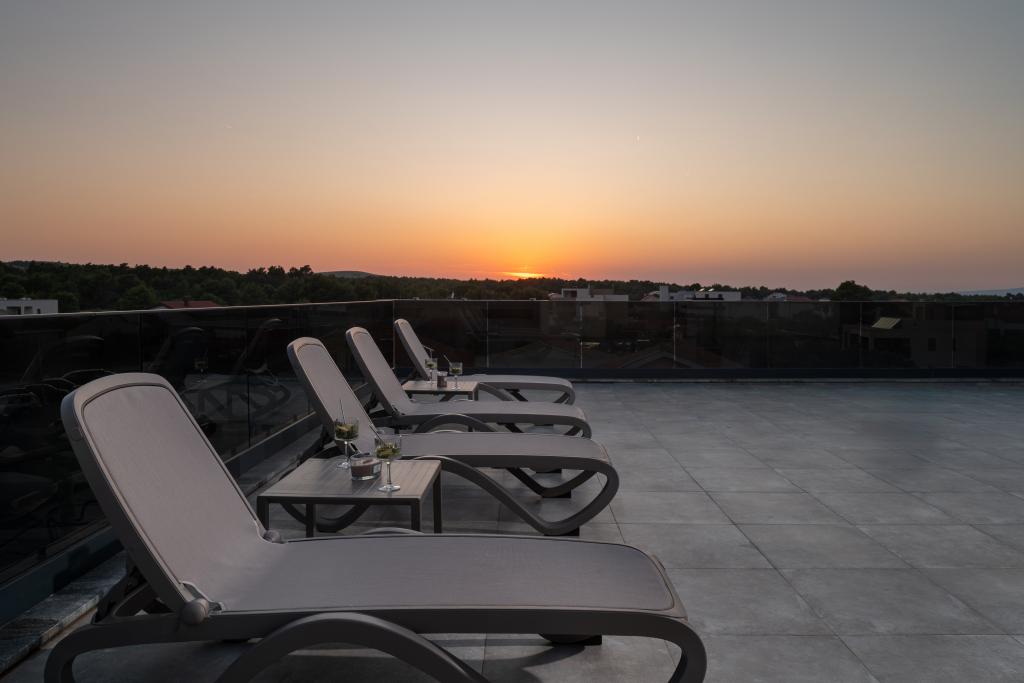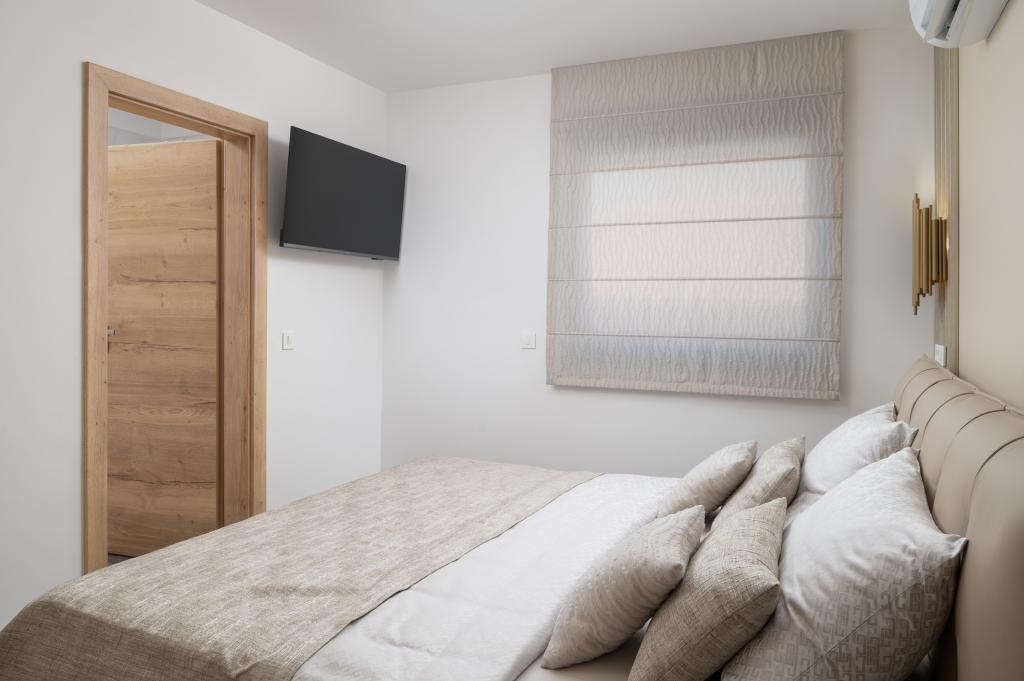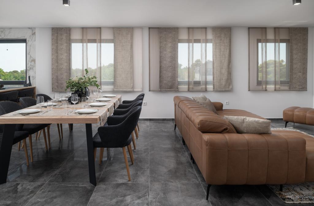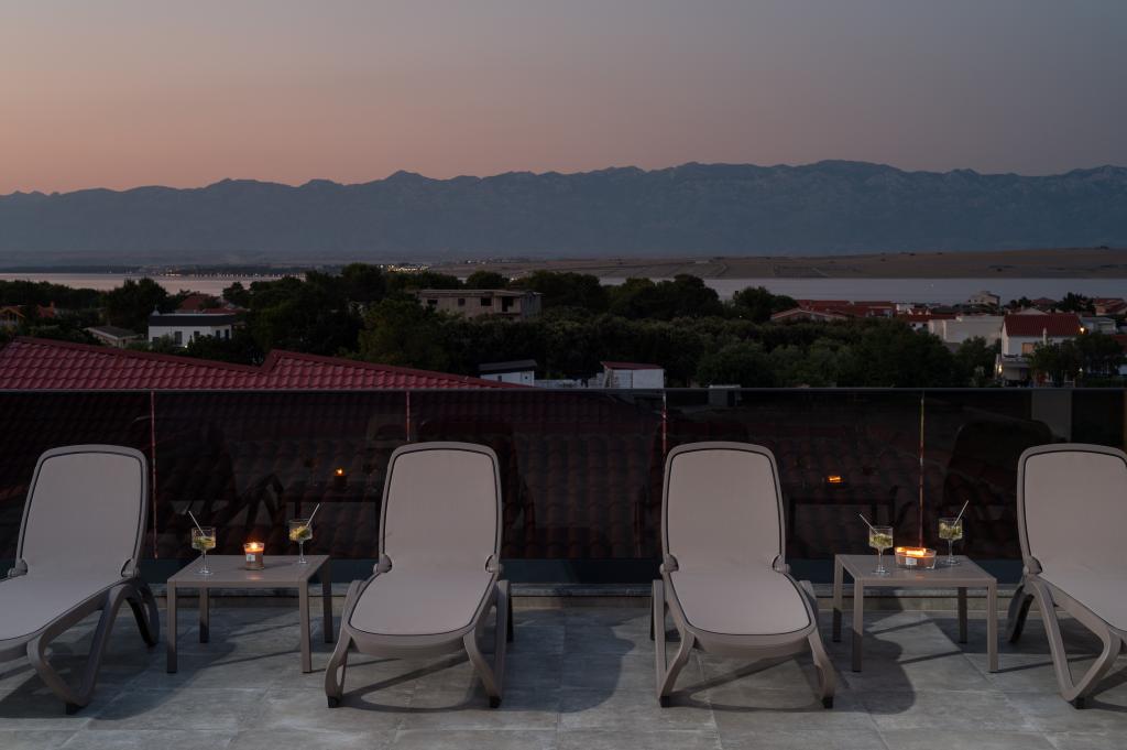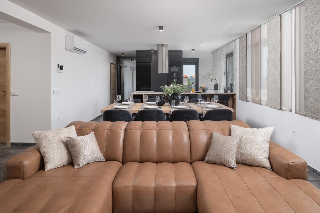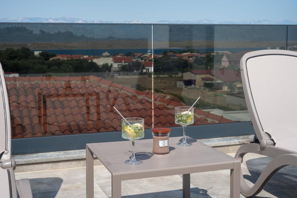 Ce penthouse 5 étoiles, décoré avec goût et entièrement équipé, est situé au deuxième étage, au cœur de l'île de Vir. D'une superficie de 100 m², il est idéal pour accueillir 4 à 5 personnes. Il se compose d'un séjour avec cuisine équipée et coin repas, de toilettes séparées, d'un dressing, de deux chambres climatisées avec lit double et télévision par satellite, ainsi que de deux salles de bains privatives (l'une avec douche et l'autre avec baignoire). Le séjour dispose d'un canapé-lit pour une personne. Le penthouse bénéficie d'un balcon couvert de 3 m² avec barbecue électrique, table et chaises, offrant une vue partielle sur la mer. Enfin, une terrasse sur le toit de 90 m² avec vue mer et transats complète ce bien.