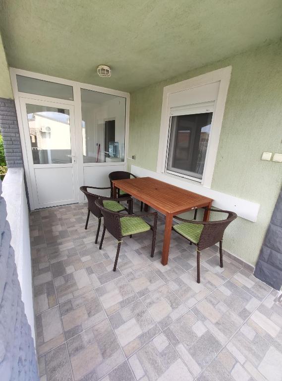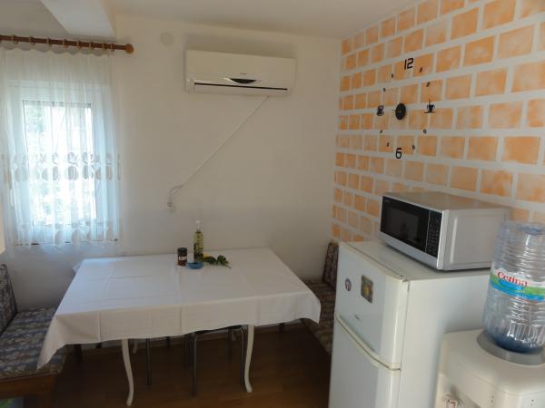 L'appartement est situé dans un quartier calme de l'île, au premier étage avec une entrée séparée et une terrasse. L'appartement se compose de deux chambres à coucher, salon, cuisine avec salle à manger, salle de bain et terrasse. Il y a un espace de stationnement dans la cour ainsi que la possibilité d'utiliser le gril. L'appartement est équipé d'une télévision à écran LCD, d'un chauffe-eau, d'un lave-vaisselle, d'un four micro-ondes, d'un grille-pain, d'un sèche-cheveux, d'un fer à repasser et d'un lave-linge. La plage de galets convient aux familles avec enfants en bas âge et se trouve à 220 mètres de l'appartement. Vous trouverez également un petit café sur la plage.