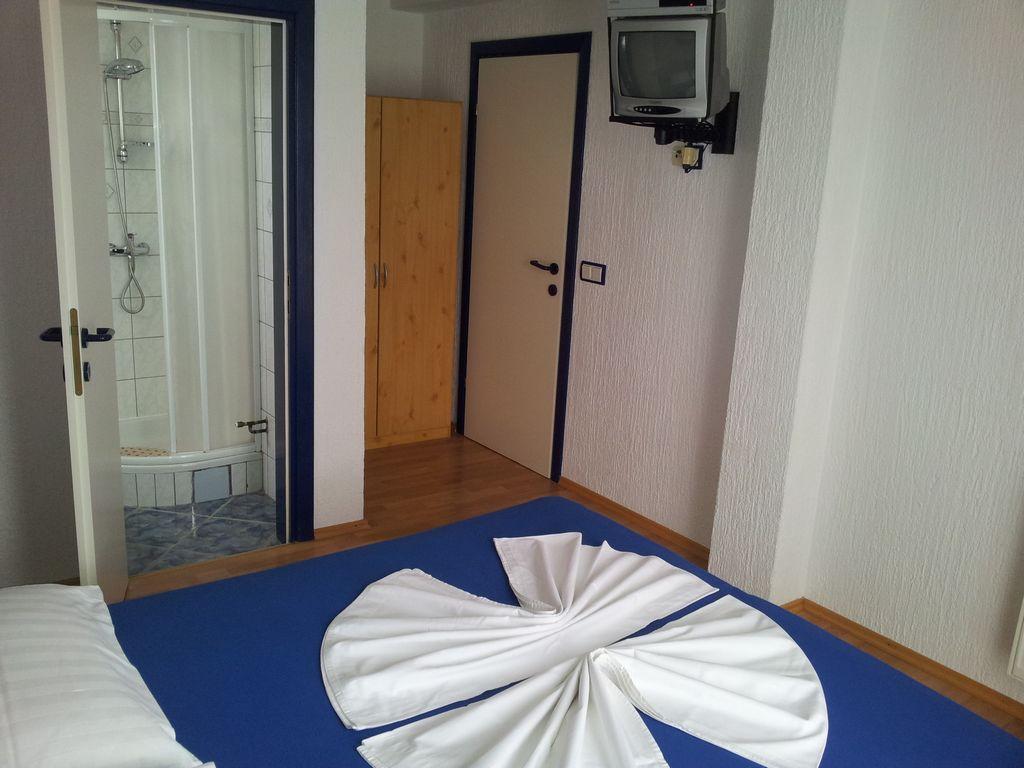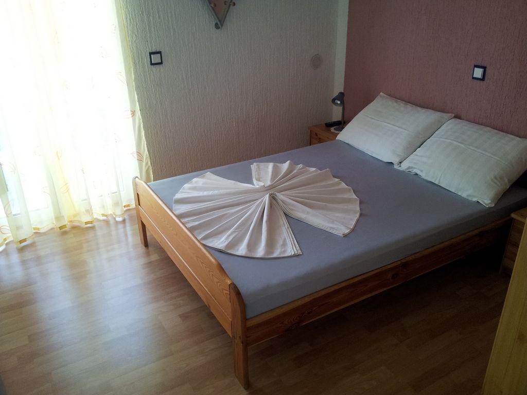Appartement moderne avec deux balcons au premier étage d'une maison familiale, se compose d'un salon, d'une cuisine, de deux chambres, chaque chambre comprend sa propre salle de bain, balcon et TV satellite, Wi-fi, dans un quartier calme, quatrième rangée de la mer , 3 minutes à pied de la plage, 5 minutes du premier magasin et arrêt de bus. Dans la cour il y a un barbecue pour les invités et une place de parking.