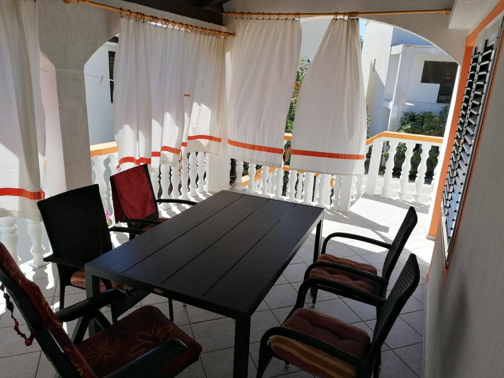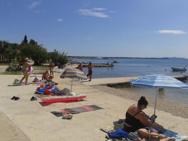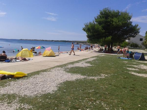 Bienvenue sur l'île de Vir dans l'appartement de la famille Mužina, qui offre ses services depuis de nombreuses années. La maison se trouve du côté sud de l'île dans le paisible village de Luka, idéal pour les couples avec enfants, qui ont leur propre espace autour de la maison pour jouer et un chemin sûr vers la plage. Vous rejoindrez le centre de l'île depuis l'appartement par une promenade le long de la mer. L'appartement est entièrement équipé et climatisé. La maison est raccordée à l'eau de la ville et aux égouts. Il a deux chambres à coucher avec un lit double (une chambre avec une terrasse et une TV), une cuisine, une salle de bain et une terrasse avec une table et des chaises. Utilisation sécurisée d'Internet. L'appartement est idéal pour quatre adultes ou une famille avec deux ou trois petits enfants. Il se trouve à 5 minutes à pied de la plage et à 2 minutes à pied du supermarché. Utilisation du barbecue extérieur, situé à l'ombre d'un grand figuier, ainsi que d'un parking sécurisé. La possibilité d'utiliser une douche extérieure.