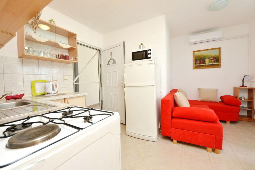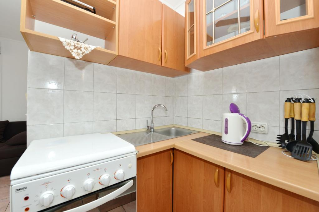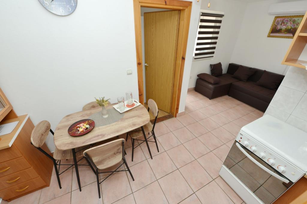 Appartement entièrement meublé dans une partie calme de l'île, pour deux personnes, à 100-150m de la mer, restauration rapide et cafés sur la plage. Possibilité d'utiliser le barbecue. L'appartement a une belle grande terrasse. L'emplacement est particulièrement intéressant pour les familles avec enfants car il n'y a pas de vie nocturne, de stands et de foule. Il y a un glacier sur la plage avec de la crème glacée et la possibilité d'acheter du maïs cuit.