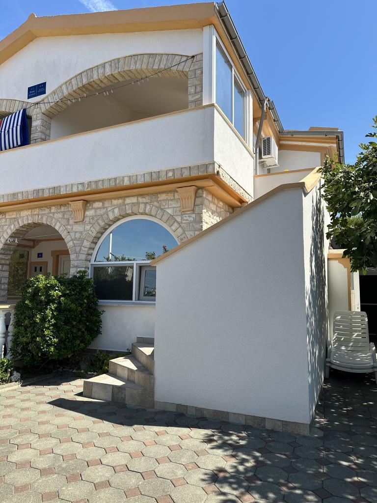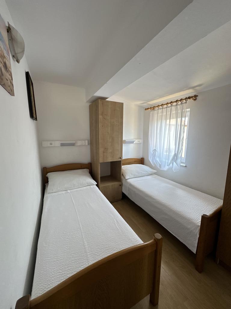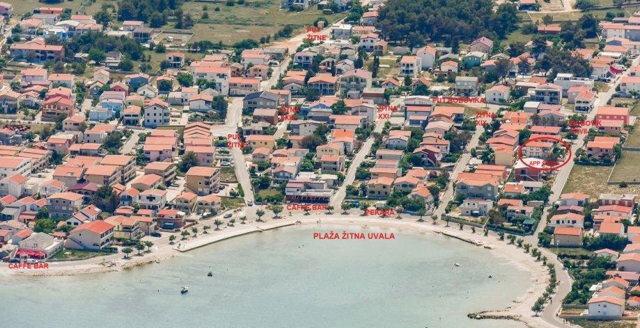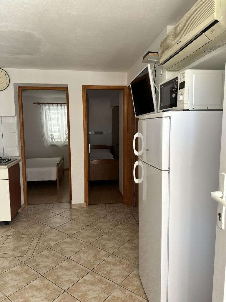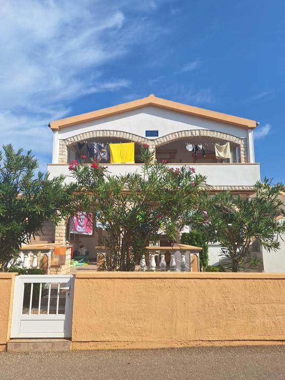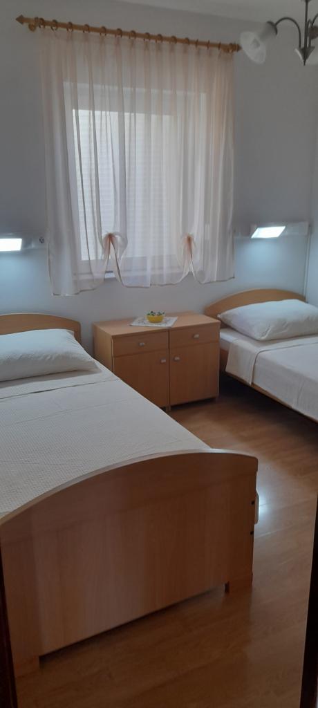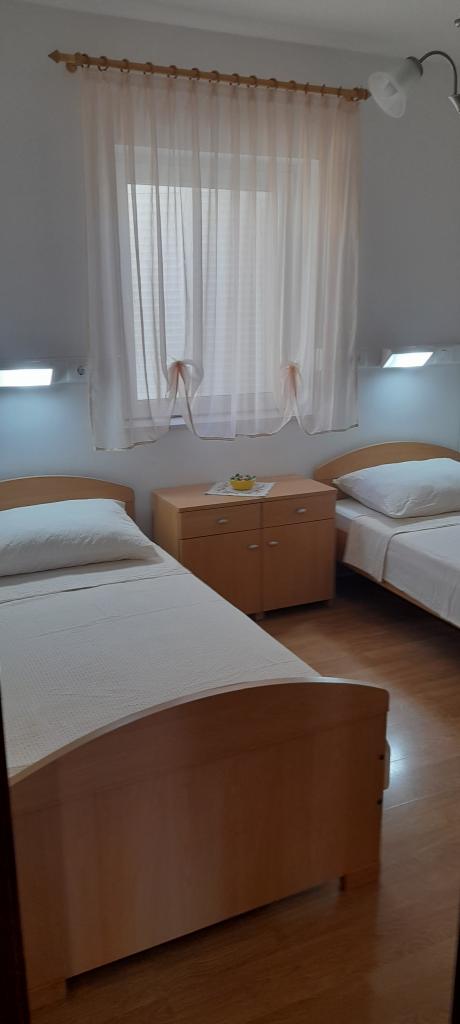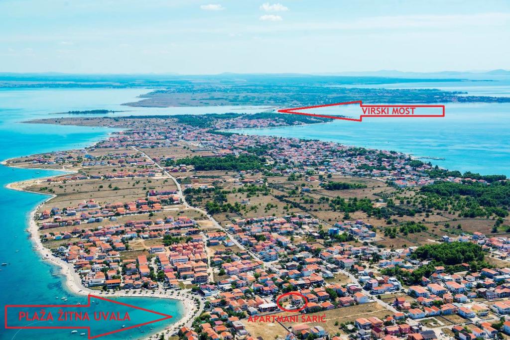 Il y a trois appartements dans la maison. Deux d'entre eux disposent de deux chambres, d'un salon, d'une cuisine, d'une salle de bain et d'une grande terrasse couverte. Chacune dispose d'une chambre avec un lit double et l'autre chambre avec deux lits simples. Le troisième appartement dispose d'une chambre avec un lit double, d'une cuisine, d'une salle de bain et également d'une grande terrasse couverte. Toutes les chambres disposent de literie. Les cuisines disposent de vaisselle pour cuisiner et servir les aliments, ainsi que d'un micro-ondes et d'une bouilloire. Chaque appartement dispose de la climatisation, qui est incluse dans le prix. Tous les appartements disposent d'une entrée séparée. Il y a un parking à l'intérieur de la maison qui est à la disposition de tous les invités. Un barbecue peut également être utilisé. La plage de Žitna uvala se trouve à 80 mètres. La plage est de galets et la mer est de sable. Il y a une promenade et une piste cyclable le long de la plage, ainsi que plusieurs cafés, restaurants, pâtisseries et boulangeries. Il y a plusieurs commerces à moins de 100m. Le centre de Vir est à 1800m.