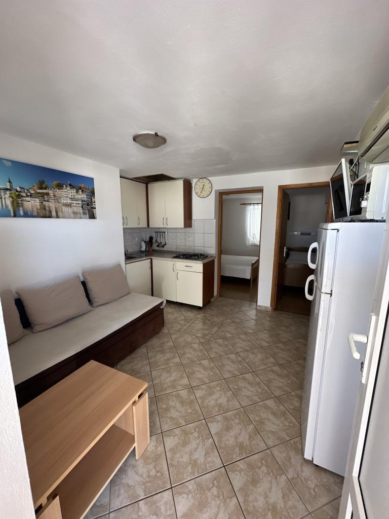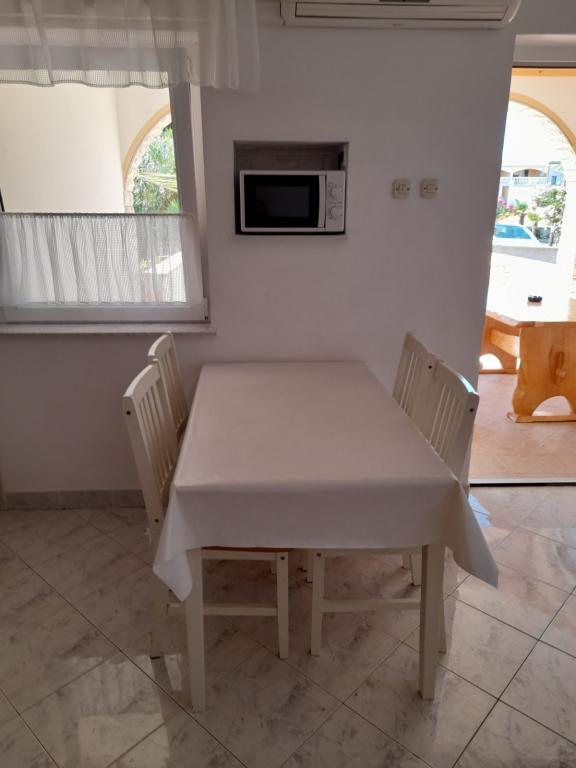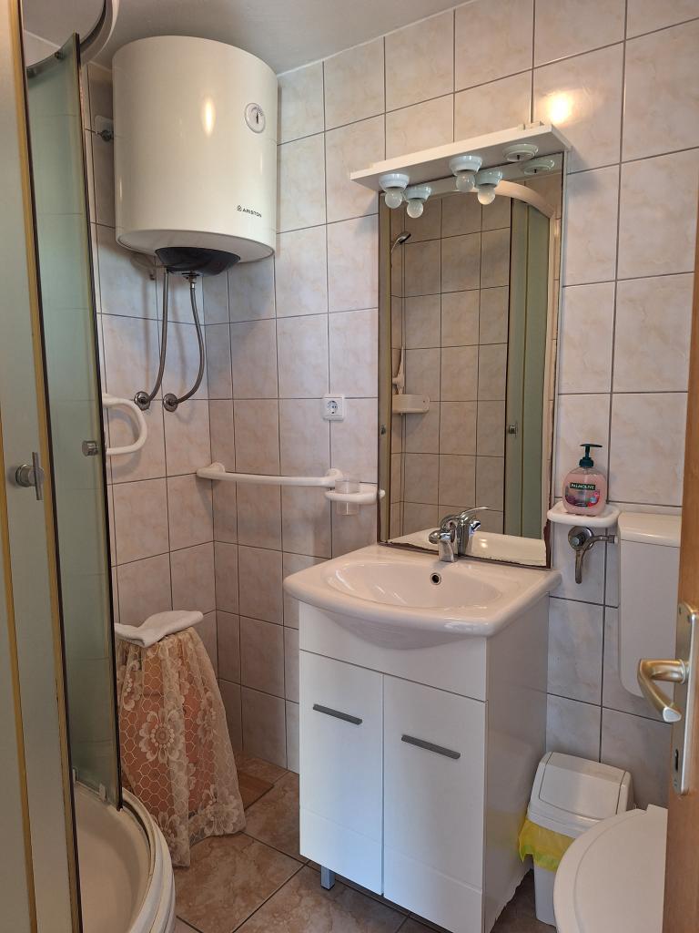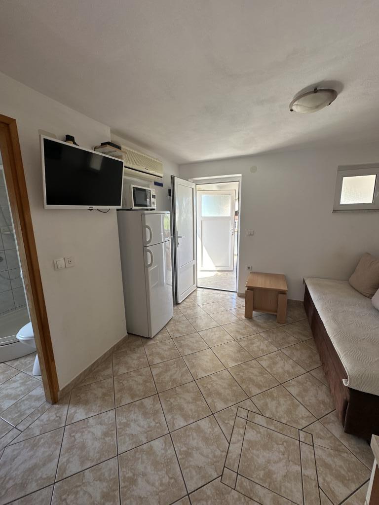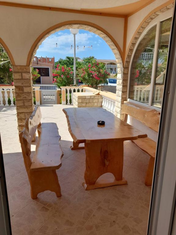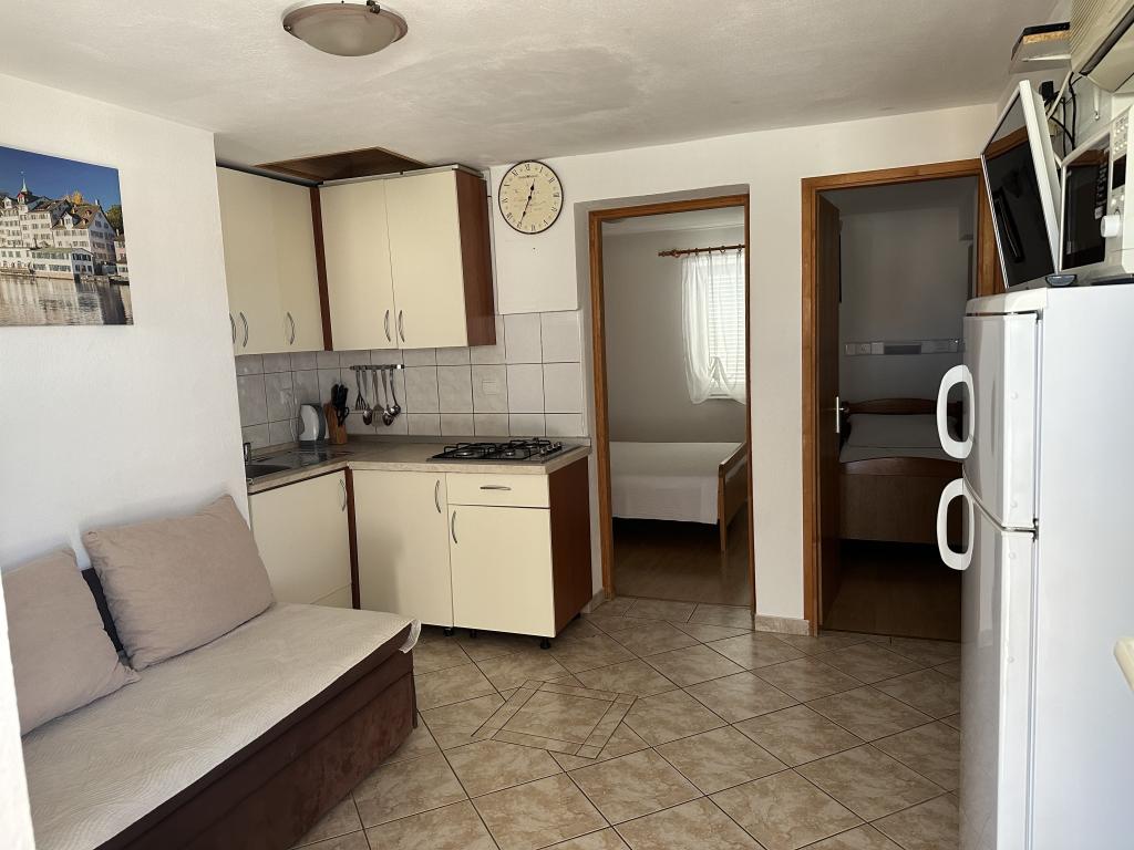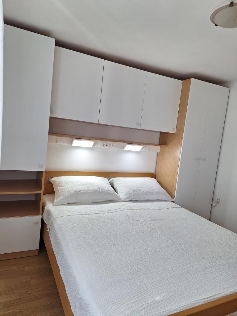 Il y a trois appartements dans la maison. Deux d'entre eux disposent de deux chambres, d'un salon, d'une cuisine, d'une salle de bain et d'une grande terrasse couverte. Chacune dispose d'une chambre avec un lit double et l'autre chambre avec deux lits simples. Le troisième appartement dispose d'une chambre avec un lit double, d'une cuisine, d'une salle de bain et également d'une grande terrasse couverte. Toutes les chambres disposent de literie. Les cuisines disposent de vaisselle pour cuisiner et servir les aliments, ainsi que d'un micro-ondes et d'une bouilloire. Chaque appartement dispose de la climatisation, qui est incluse dans le prix. Tous les appartements disposent d'une entrée séparée. Il y a un parking à l'intérieur de la maison qui est à la disposition de tous les invités. Un barbecue peut également être utilisé. La plage de Žitna uvala se trouve à 80 mètres. La plage est de galets et la mer est de sable. Il y a une promenade et une piste cyclable le long de la plage, ainsi que plusieurs cafés, restaurants, pâtisseries et boulangeries. Il y a plusieurs commerces à moins de 100m. Le centre de Vir est à 1800m.
