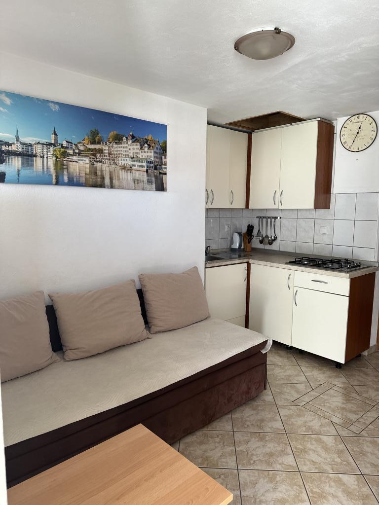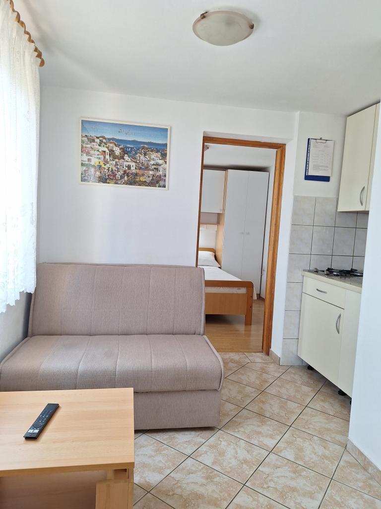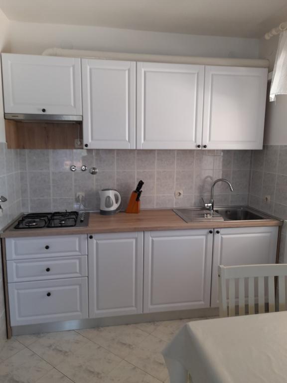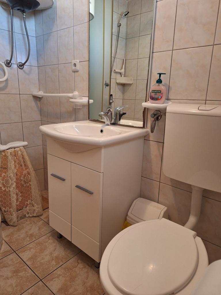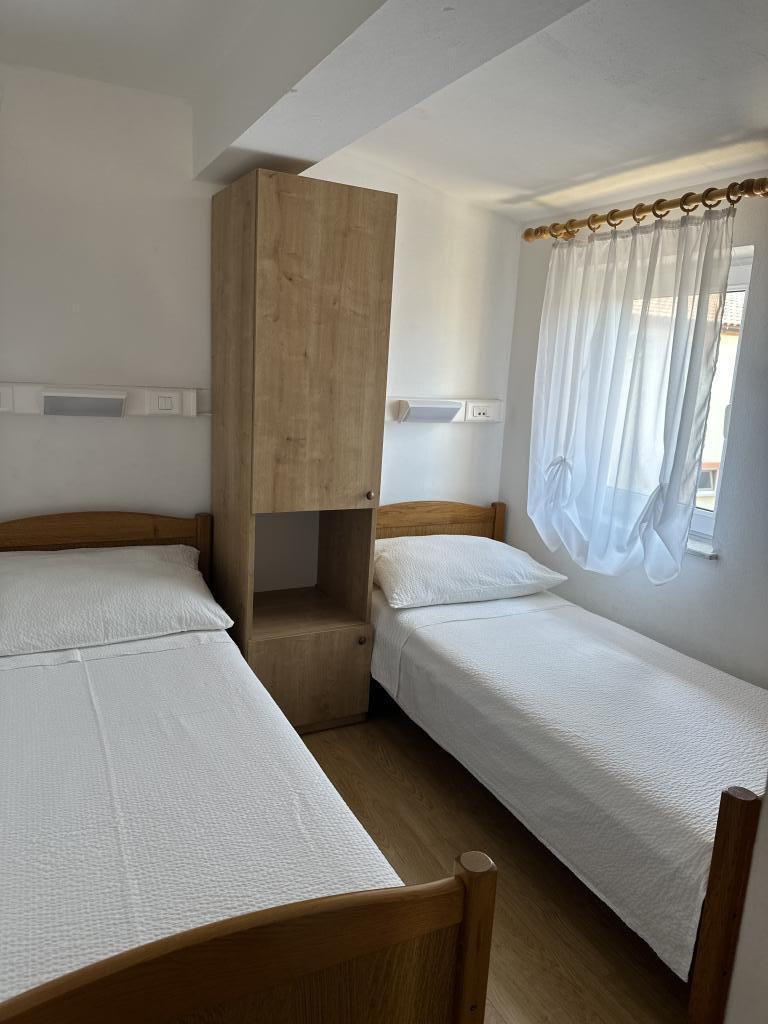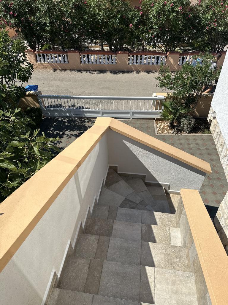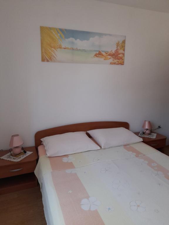 Il y a trois appartements dans la maison. Deux d'entre eux disposent de deux chambres, d'un salon, d'une cuisine, d'une salle de bain et d'une grande terrasse couverte. Chacune dispose d'une chambre avec un lit double et l'autre chambre avec deux lits simples. Le troisième appartement dispose d'une chambre avec un lit double, d'une cuisine, d'une salle de bain et également d'une grande terrasse couverte. Toutes les chambres disposent de literie. Les cuisines disposent de vaisselle pour cuisiner et servir les aliments, ainsi que d'un micro-ondes et d'une bouilloire. Chaque appartement dispose de la climatisation, qui est incluse dans le prix. Tous les appartements disposent d'une entrée séparée. Il y a un parking à l'intérieur de la maison qui est à la disposition de tous les invités. Un barbecue peut également être utilisé. La plage de Žitna uvala se trouve à 80 mètres. La plage est de galets et la mer est de sable. Il y a une promenade et une piste cyclable le long de la plage, ainsi que plusieurs cafés, restaurants, pâtisseries et boulangeries. Il y a plusieurs commerces à moins de 100m. Le centre de Vir est à 1800m.