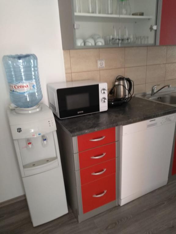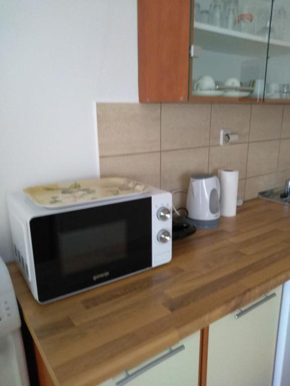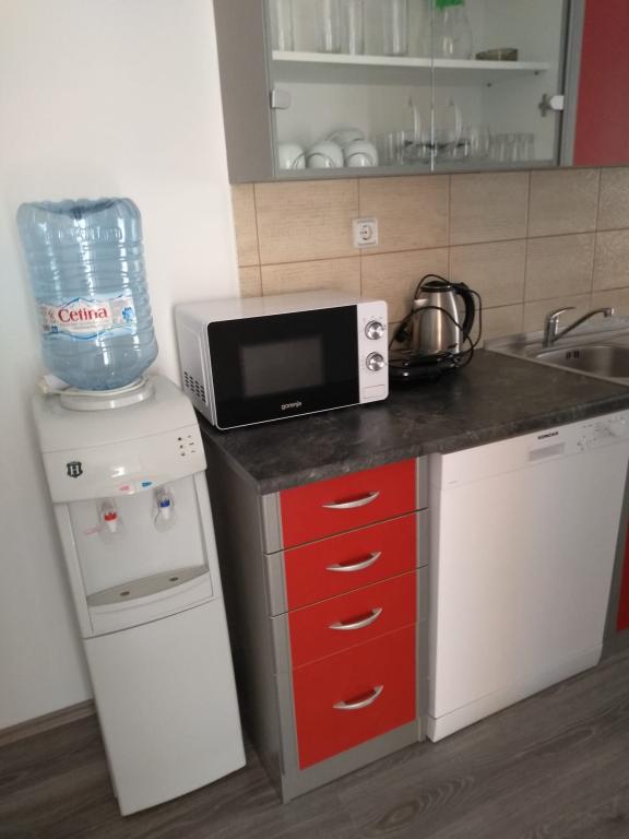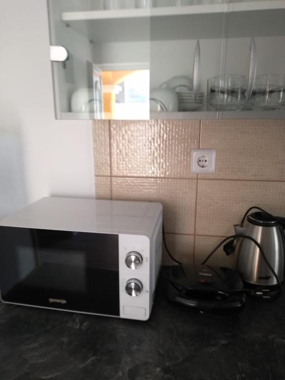 Appartement entièrement équipé dans une rue calme. La terrasse donne sur la pinède et la mer. L'appartement est entièrement meublé avec tous les besoins tels que wi-fi, climatisation, micro-ondes, cuisinière, distributeur d'eau froide et chaude, etc. Le stationnement est situé dans la cour de la maison. La plage est à 2 minutes à pied.