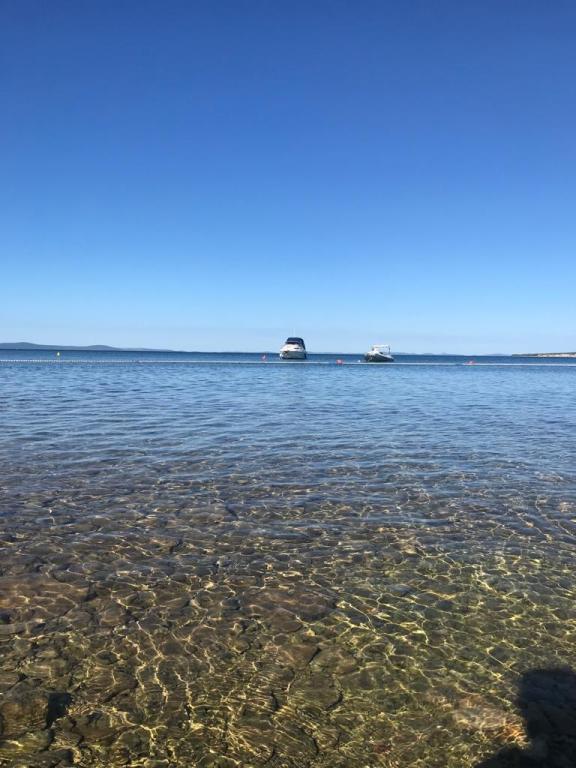 Bel endroit, propriétaires très sympathiques et gentils. Appartement propre, beau, grande terrasse à l'ombre. La mer est à quelques mètres, propre et chaude. Un peu plus loin sur le fond sablonneux. Restaurant au coin de la rue, boulangerie à quelques minutes, Maxi konzum aussi. Très satisfait. Nous recommandons.