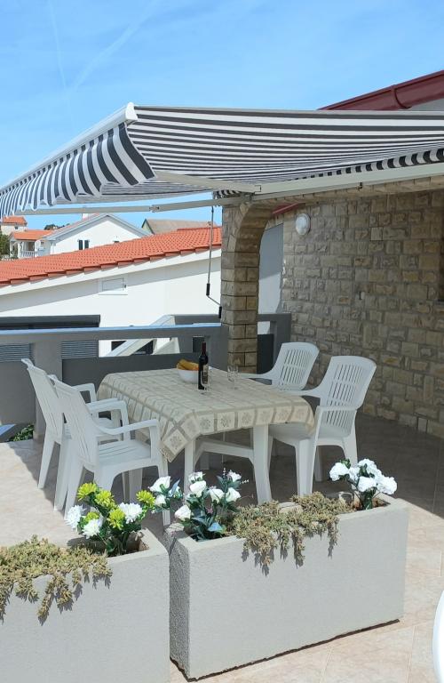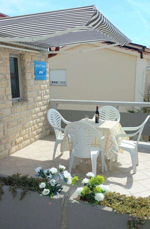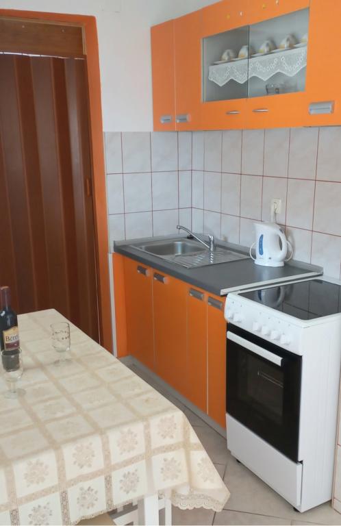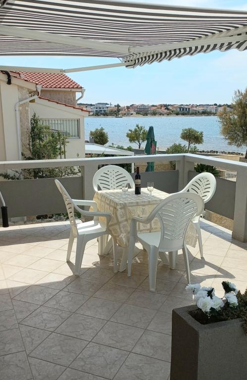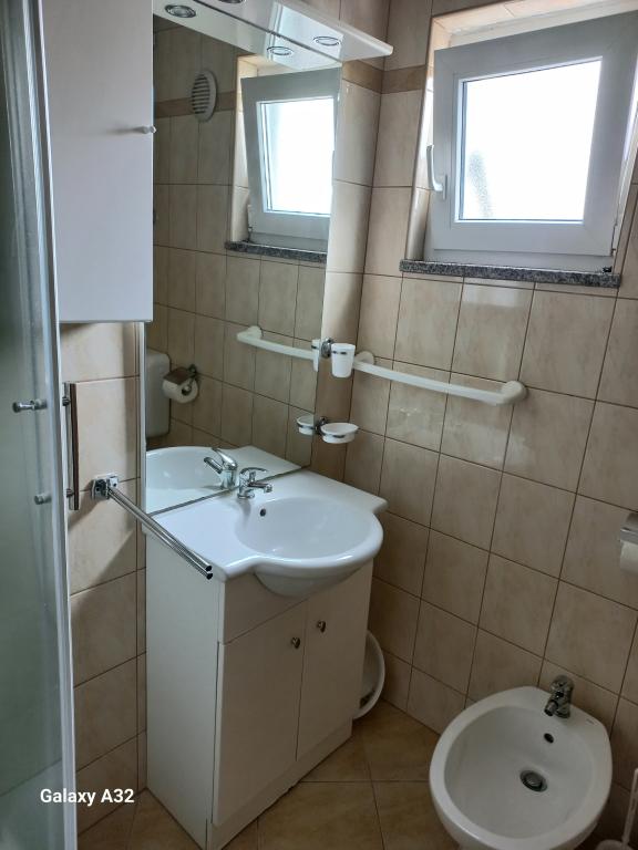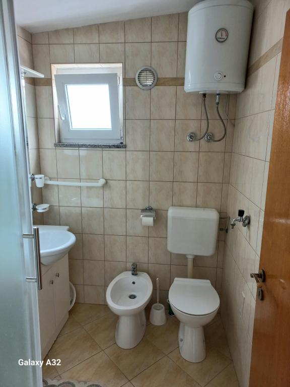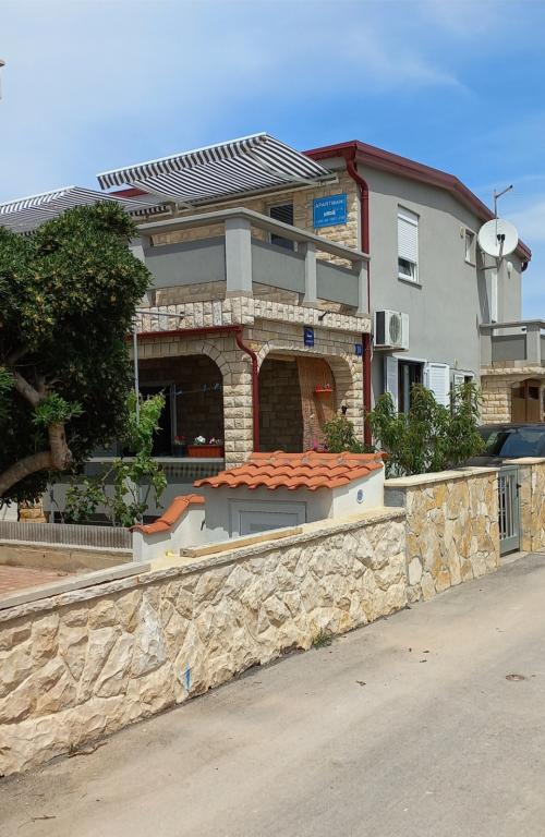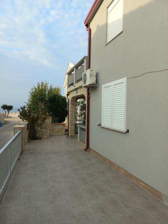 Les appartements se situent au premier étage de la maison. Ils disposent d'une grande terrasse avec vue sur la mer et se trouvent dans un quartier calme, en deuxième ligne de mer, à seulement 20 mètres de la plage. Le parking, situé dans la cour de la maison, est réservé aux véhicules de petite taille. Les véhicules plus grands sont garés sur le rivage. Un barbecue, la climatisation, la télévision, la télévision par satellite et le Wi-Fi sont à la disposition des hôtes.