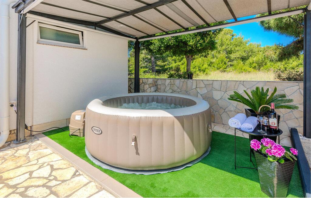 Les appartements "Nella" sont situés dans la partie sud de l'île de Vir, dans le village "Kozjak", près de la forteresse historique "Kaštelina", à seulement 50 mètres de la mer. Nous proposons trois appartements, deux au premier étage et un au rez-de-chaussée. Chaque appartement dispose d'une entrée séparée et de sa propre terrasse avec un auvent et des sièges, ce qui permet aux clients de passer un séjour agréable et de profiter du plein air tout au long de la journée. Pour nos clients, l'offre comprend un jacuzzi à remous ! Offrez-vous les vacances dont vous rêvez : après une balade à pied ou à vélo, profitez et détendez-vous dans le jacuzzi hydromassant ! Les appartements ont été récemment rénovés, modernes et entièrement équipés (wi-fi, climatisation, TV SAT, linge de lit, etc.). Ils sont situés dans une rue calme, et il y a un restaurant et une boutique à proximité immédiate. Vous bénéficierez d'un parking gratuit dans la cour. La plage "Kozjak" est à 50m, elle est aménagée, en partie en béton et en partie en sable, idéale pour les enfants ; et tout le long de la colonie "Kozjak" (le cap de l'île) se trouvent des promenades et des plages aménagées. Chers invités, bienvenue !