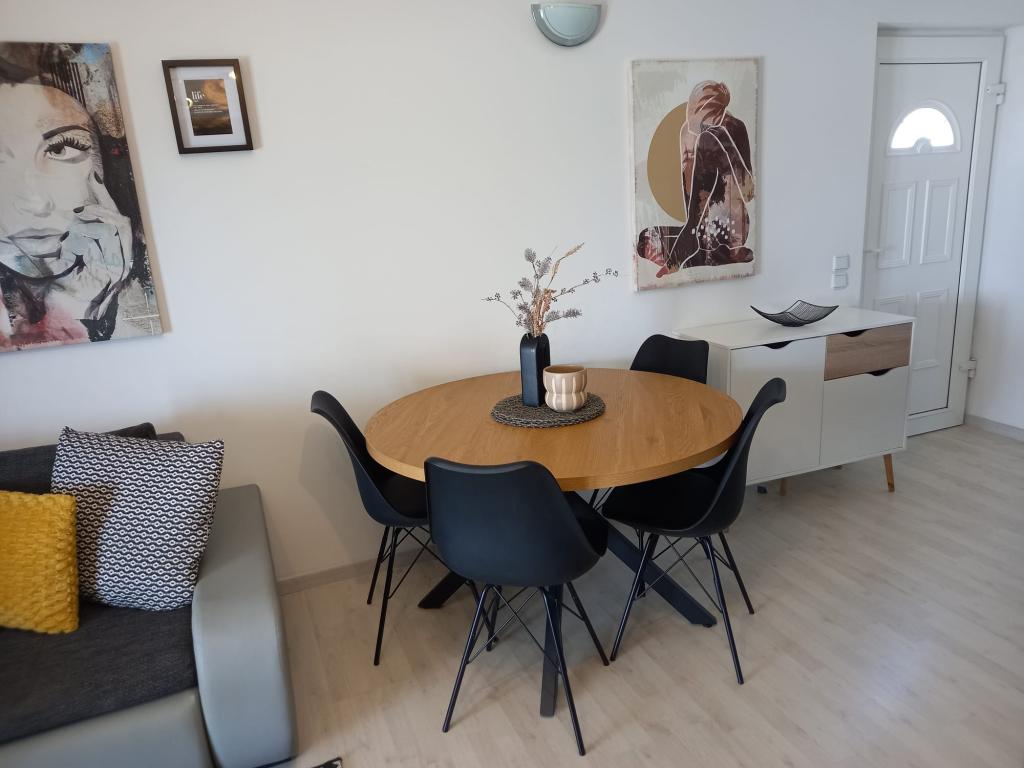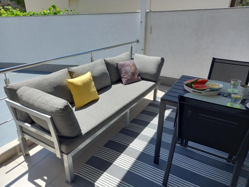 L'appartement est très soigné, moderne et propre. Ils ont même deux terrasses, donc il y a toujours de l'ombre quelque part. Les propriétaires sont très sympathiques, toujours disponibles, à notre arrivée nous avons été accueillis avec un accueil délicieux, notamment des croissants chauds faits maison. La mer est à une minute à pied, mais il y a aussi une jetée sur la plage, idéale pour que les jeunes puissent sauter dans l'eau. Je recommande! Tjacha