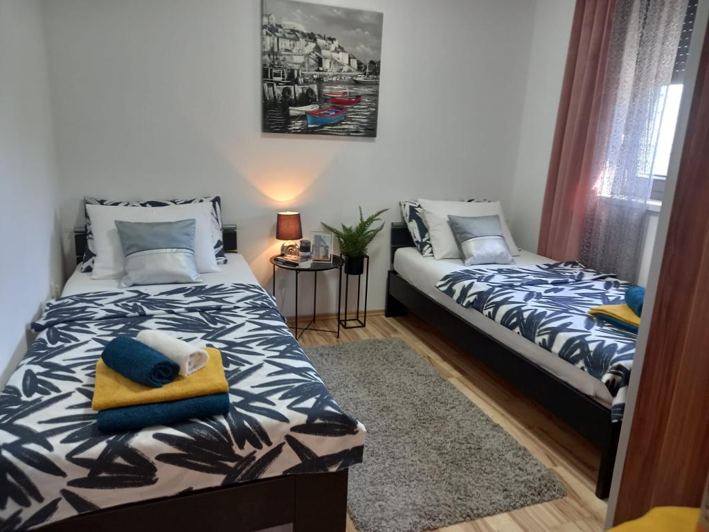 Tout d’abord, nous remercions nos hôtes merveilleux, des gens vraiment merveilleux et agréables. Nous recommandons l'appartement aux familles avec de jeunes enfants. Nous étions en vacances avec un lapin et un bébé pendant 2 ans et nous avons tous fait un excellent travail. L'appartement est excellent, soigné avec tout ce dont nous avions besoin, la cuisine est bien équipée, les lits sont confortables. Sur le balcon, nous avons apprécié le café et l'odeur de la mer. La plage est très proche, à quelques minutes à pied, ce qui est génial si les enfants n'aiment pas plonger. La plage était toute faite sur mesure, avec de petites pierres au début, puis un beau sable et beaucoup de bardeaux pour les enfants et les grands-mères qui avaient ramassé les coquillages. Merci pour d'agréables vacances. Belle salutation de Slavonie.
