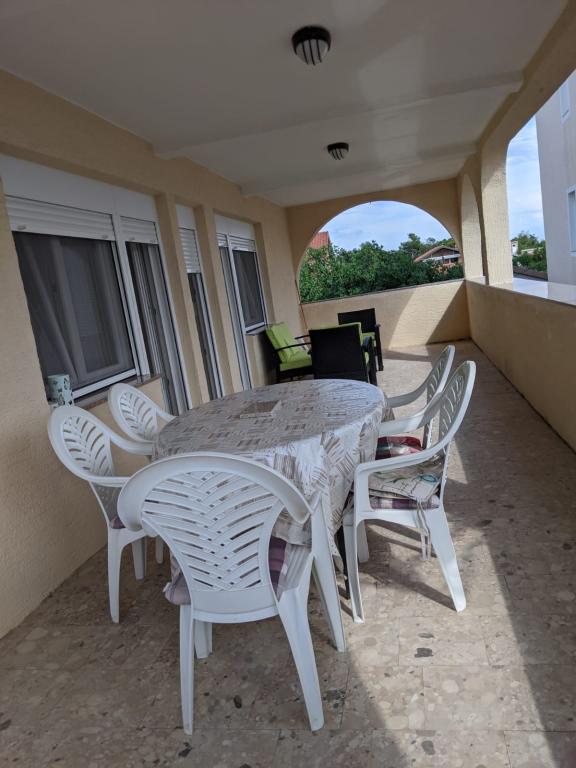 Au sud de l'île, une maison avec 2 grands appartements est à louer. Chaque appartement est prévu pour 4 à 7 personnes. Chaque appartement dispose de 3 chambres, séjour, cuisine, salle de bain avec 2 cabines de douche, 2 lavabos, WC + 1 WC indépendant. La grande terrasse couverte a une vue sur le côté sud. L'appartement au deuxième étage a une vue sur la mer. Les appartements sont entièrement équipés. Dans la grande cour il y a une douche extérieure, un grill et un grand parking.
