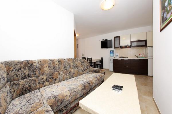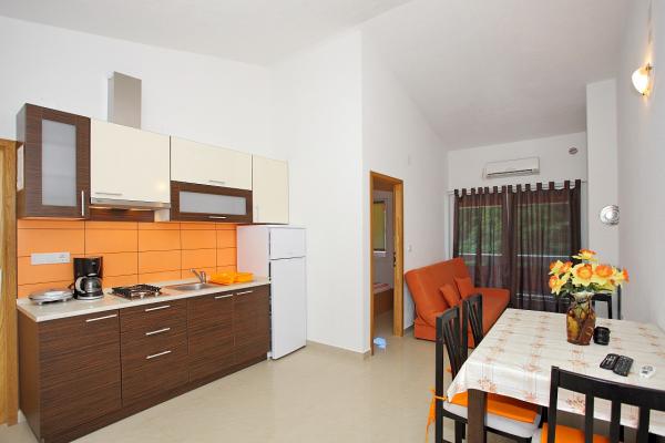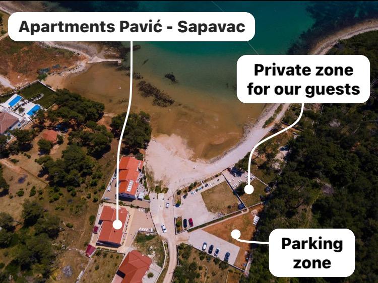 Les appartements sont situés dans la baie tranquille de Sapavac, à côté de la plage elle-même, entourés d'une forêt de pins. Idéal pour des vacances en famille, sans bruit. Les appartements sont neufs, décorés de façon moderne, avec tous les appareils nécessaires et sont climatisés. Chaque appartement possède sa propre terrasse avec vue mer. Dans la cour, il y a un grill avec un grill et un espace de convivialité, qui est à la disposition des clients sans frais supplémentaires. La plage est de galets et la mer a du sable très doux, idéal pour les petits enfants.