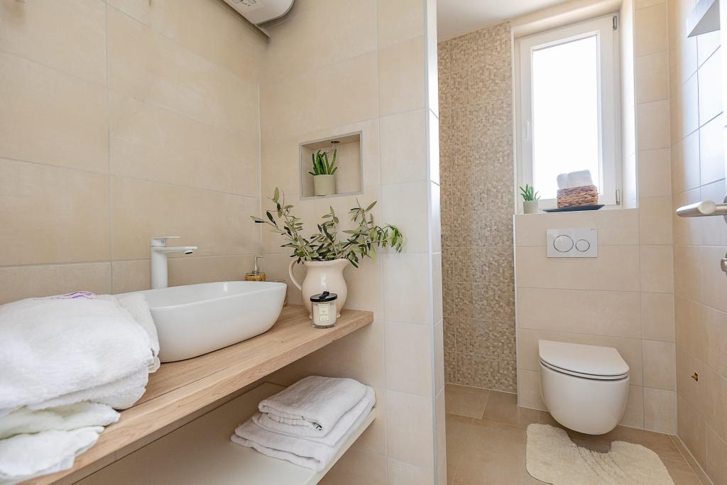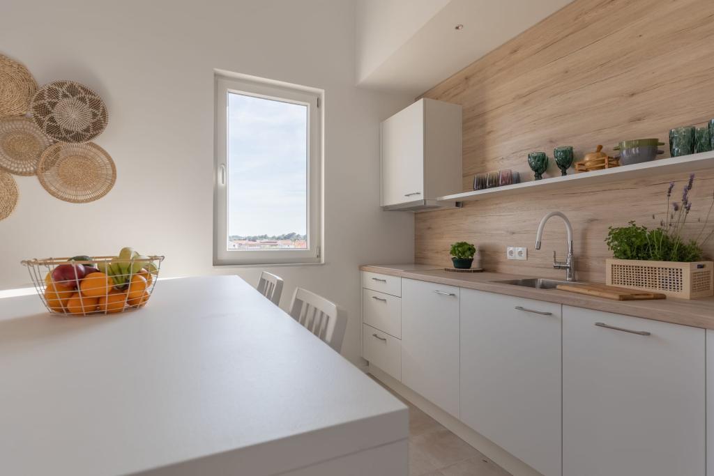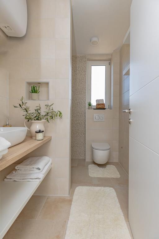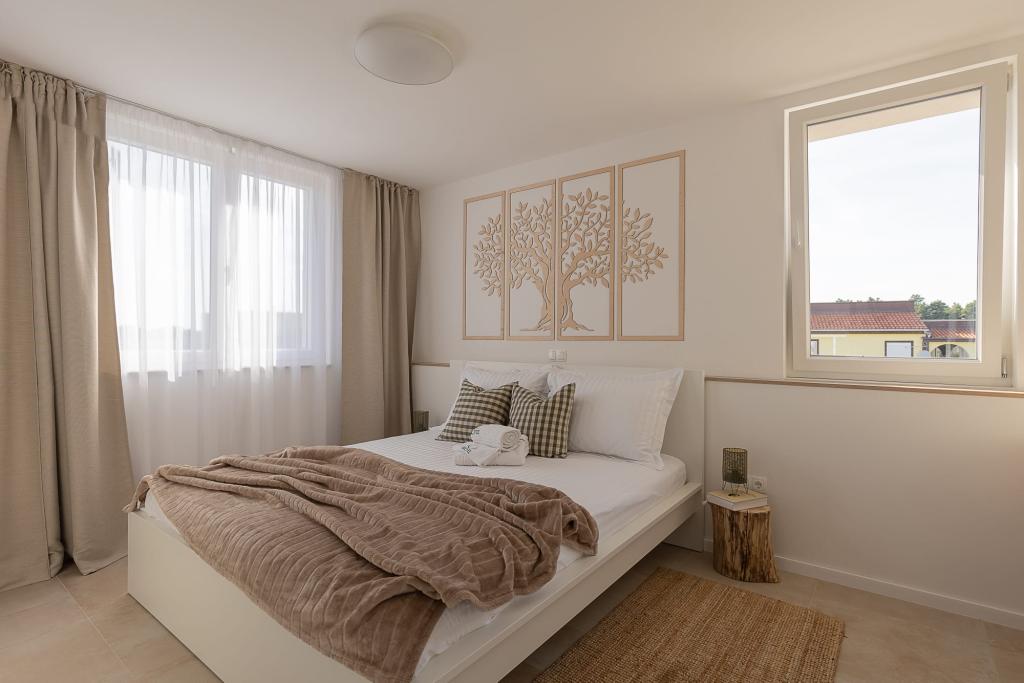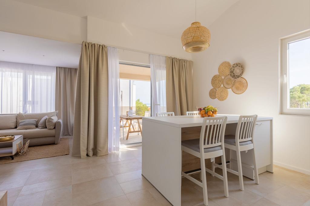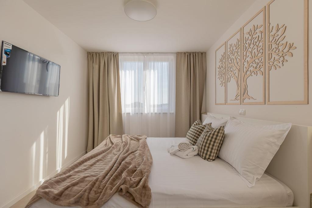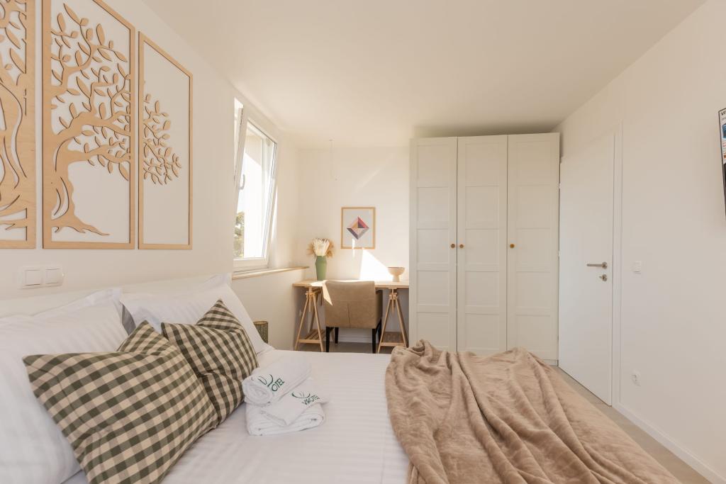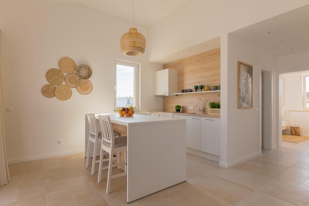 Nos appartements de luxe bénéficient d'un emplacement central, à proximité immédiate des restaurants, des commerces et des principales attractions, ce qui en fait le choix idéal pour des vacances sans souci, sans avoir besoin de voiture. La plage est accessible à pied. La résidence est un immeuble neuf composé de cinq appartements indépendants, décorés avec un souci particulier du style, de l'élégance et de la qualité. Spacieux et luxueusement meublés, les appartements offrent un confort optimal et disposent chacun d'un balcon ou d'une terrasse, parfaits pour se détendre en journée comme en soirée. Les intérieurs, soigneusement conçus et aménagés avec des matériaux naturels, créent une atmosphère agréable, chaleureuse et raffinée. Un parking privé est mis à la disposition des clients directement à l'entrée de l'immeuble, contribuant ainsi au confort et à la praticité de leur séjour. Ces appartements sont idéaux pour les voyageurs recherchant un emplacement privilégié, un luxe moderne et un sentiment de confort comme à la maison.