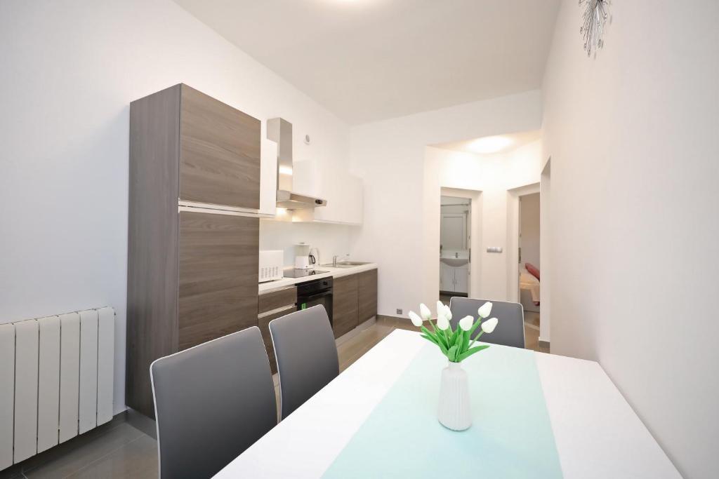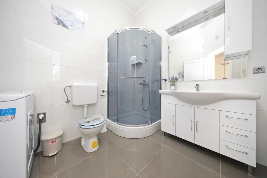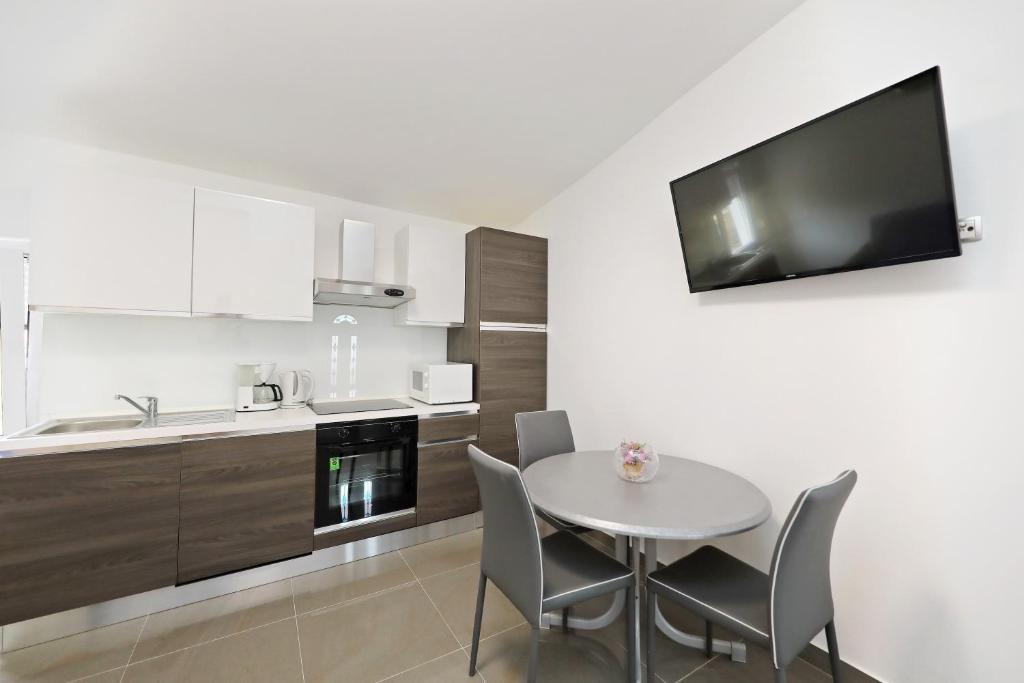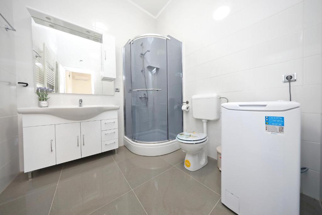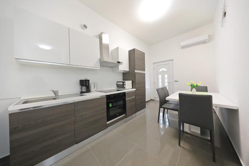 Appartement pour 6 personnes. Avant l'arrivée, excellent contact avec le propriétaire. Meilleures salutations Andel. Un séjour merveilleux. Les propriétaires étaient très gentils et serviables. L'appartement lui-même est propre, spacieux, équipé d'un lave-vaisselle, d'un lave-linge, d'une cafetière, d'un grille-pain, d'un micro-ondes, de la climatisation et de tous les ustensiles nécessaires. en plus, tablettes lave-vaisselle, serviettes, transats. Tomates et raisins savoureux dans le jardin pour les invités. Très proche de la plage de Jadro. Commerces à proximité, boulangeries et une infirmerie. Je recommande sincèrement.